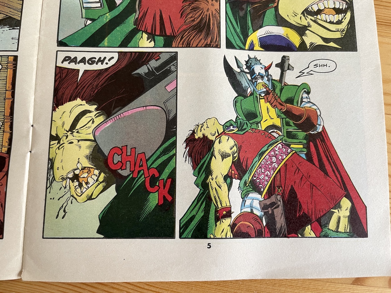 At this point we get a little insight into the past of Dragon and Scavenger, specifically how they first met. This was exciting to begin with for me as Scavenger is a favourite character and one I’d like to know more about, but I didn’t think we’d get the chance given the comic’s short lifespan. In the end though it’s pretty inconsequential, Dragon having his life saved seven years previous at the last moment by a silent Game player who disappeared just as quickly afterwards, Dragon vowing inwardly he’d recruit the stranger to the Claws next time they met.
