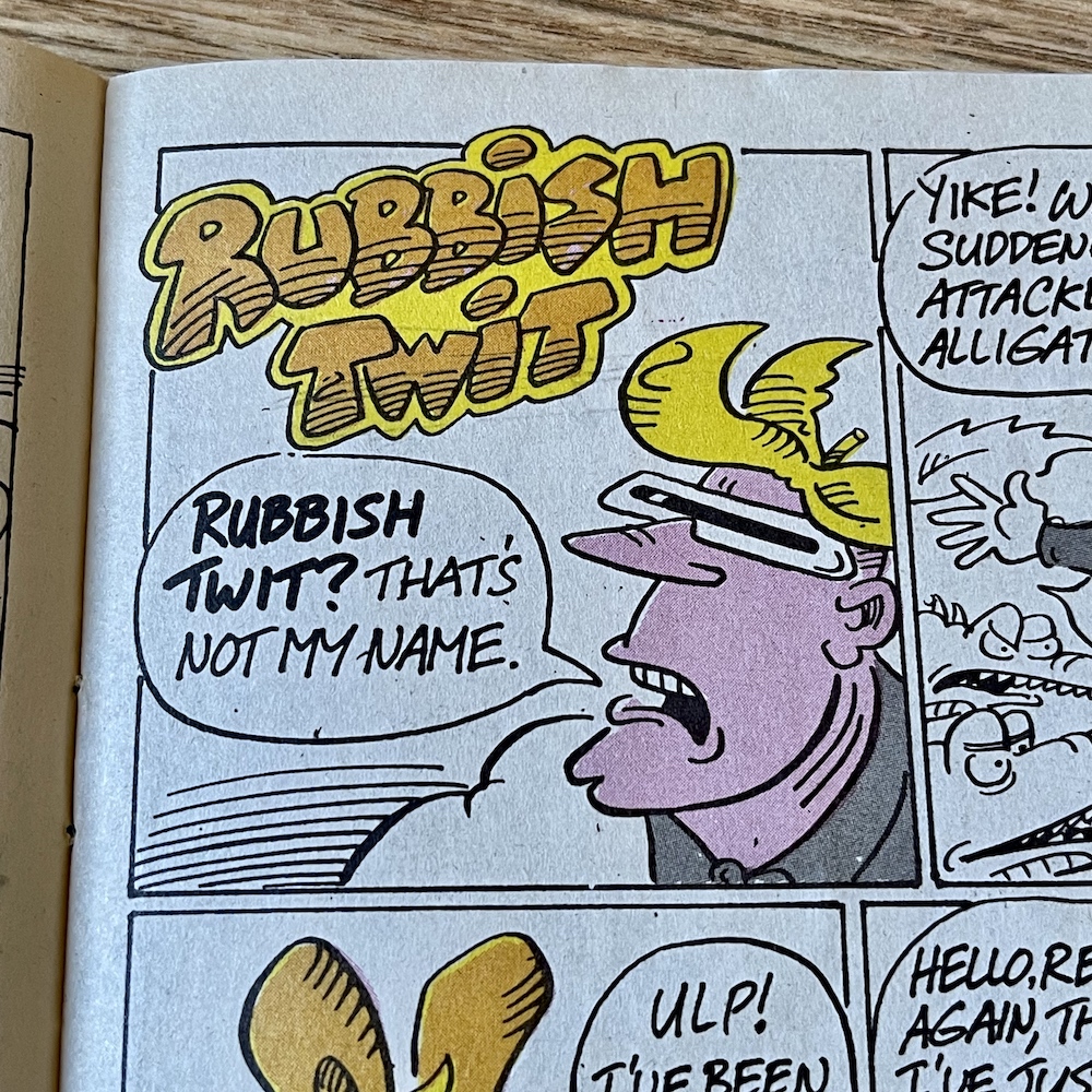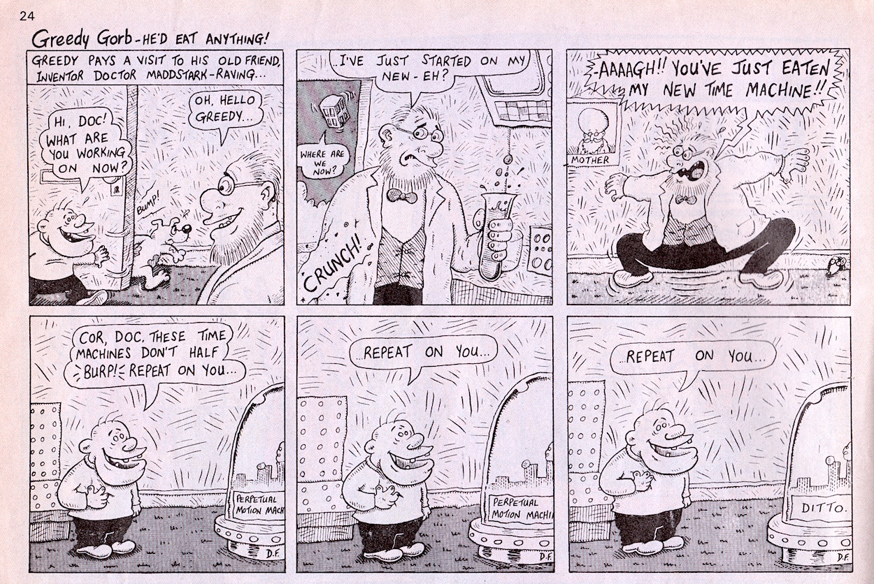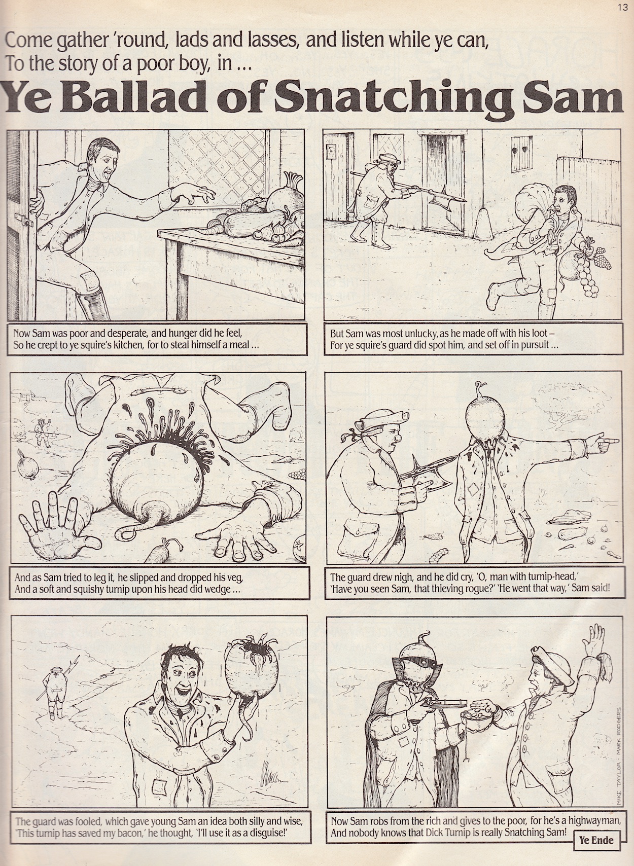 Altogether there are 12 pages of reprints. As a kid I remember recognising some but I’d no idea until right now there were so many. They are some of the very best examples of OiNK’s humour though, so for those unfamiliar with them they add a great deal to the package.