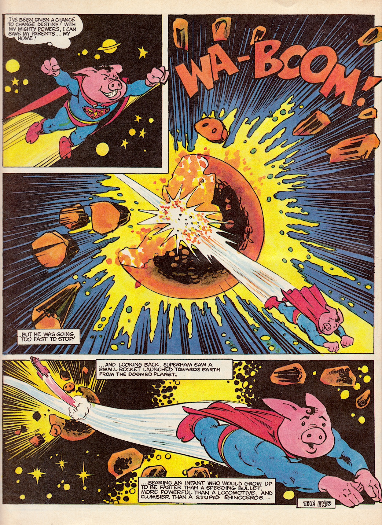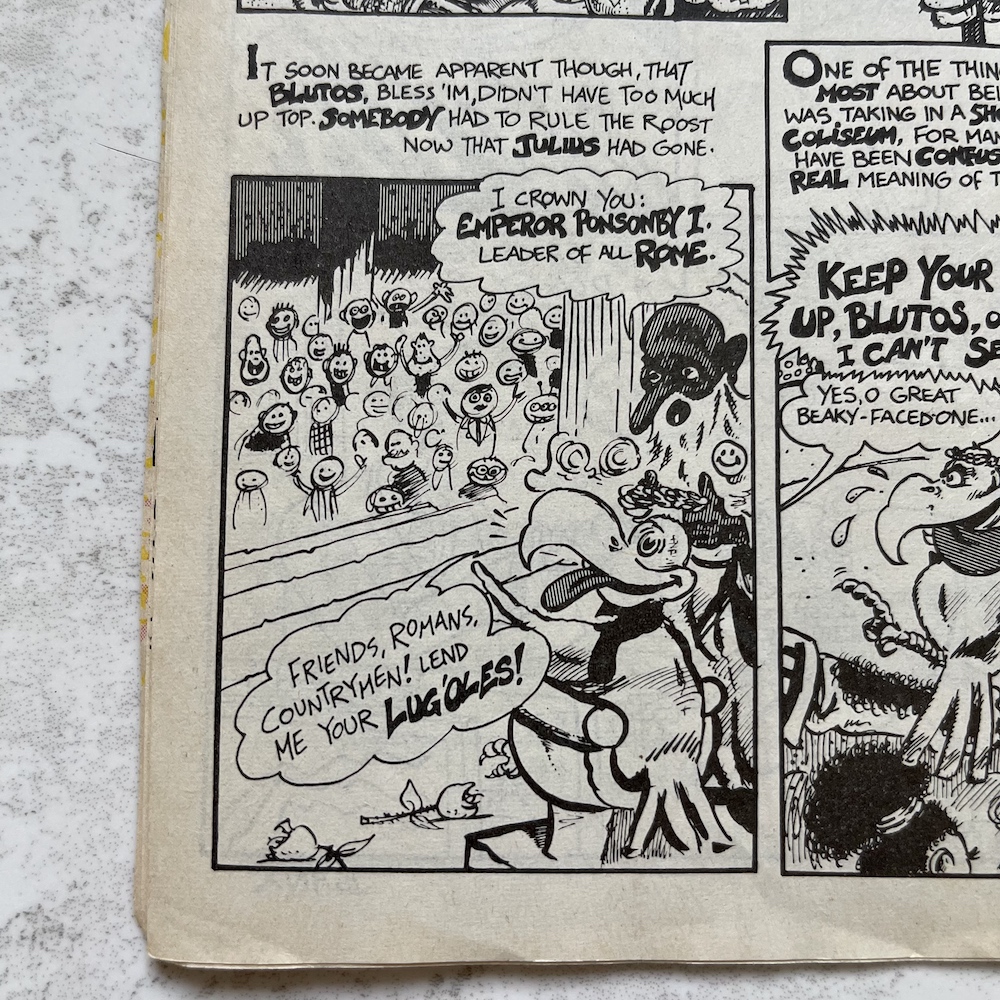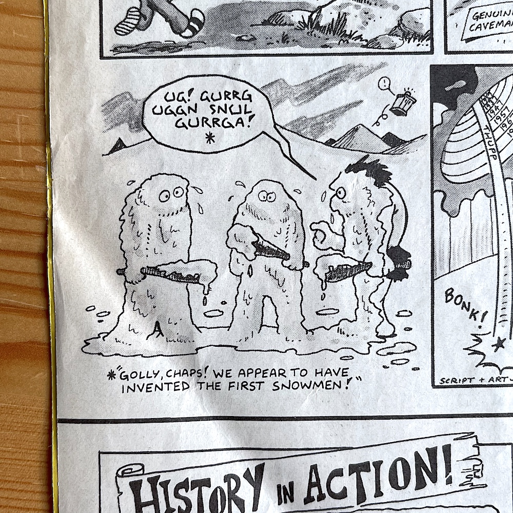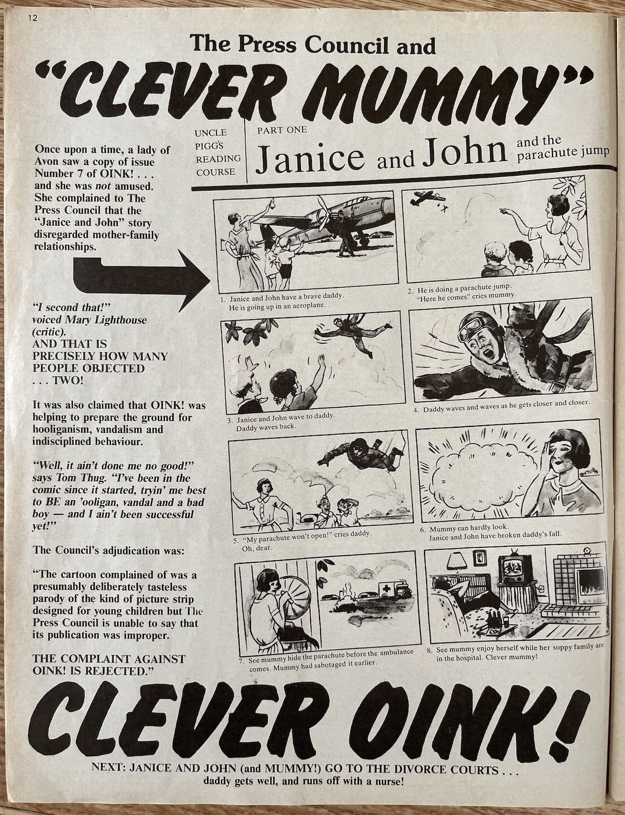 Altogether there are 12 pages of reprints. As a kid I remember recognising some but I’d no idea until right now there were so many. They are some of the very best examples of OiNK’s humour though, so for those unfamiliar with them they add a great deal to the package.