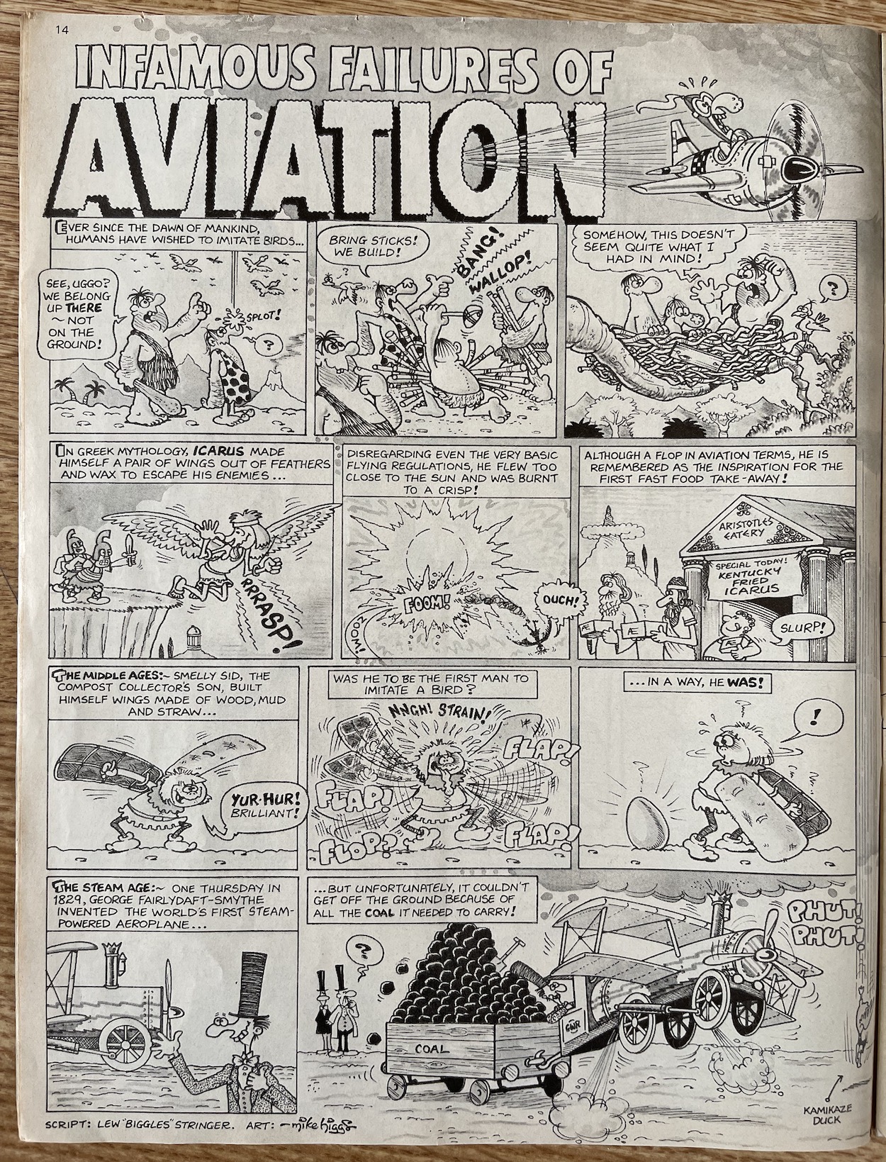 I would particularly like to know what Kevin Leeden of Goole’s reaction was upon reading this, and poor little Janice Hogan of Cumbria! (At least her dungarees provided a little context.) Lew began asking readers for their suggestions way back in the first weekly issue, #45. Inspired by Ken Reid’s Dare-A-Day Davy strip from Pow! in 1967 (readers sent in dares for the character), Lew ended up receiving many more than he could ever possibly have used, hence the list at the end.