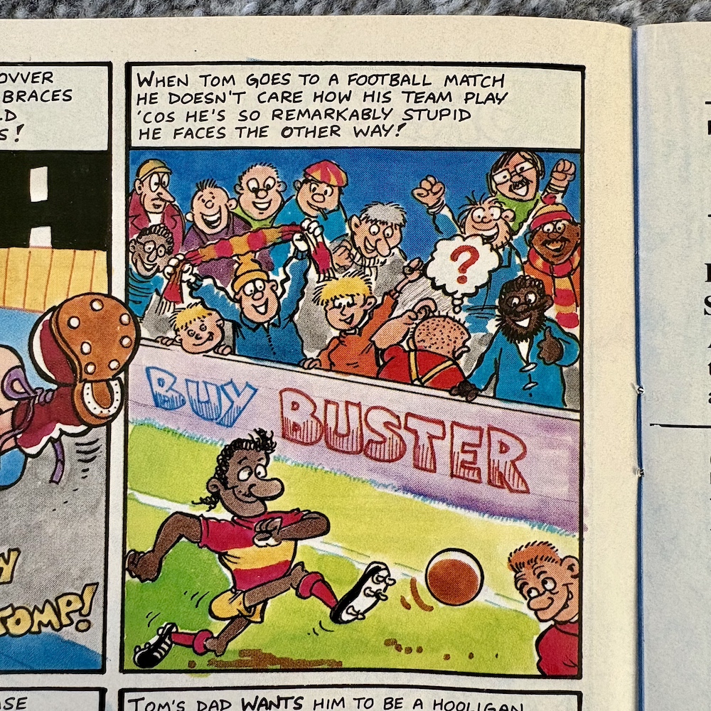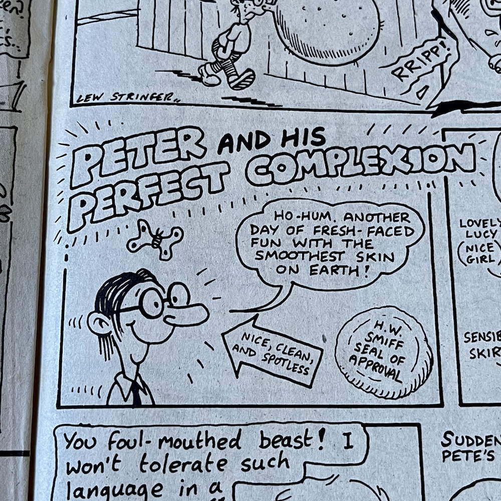 Starting this Christmas I’ll be reading each of the remaining Buster Books, one per year, so watch out for Lew’s Pete and Tom strips this festive season. They’ll both be brand new OiNK character strips for me, for the first time in decades for these two in fact, so I’m very excited to say the least. Although due to changes made for Buster, the pages above would be the last time readers saw all that ‘orrible pus exploding everywhere.
