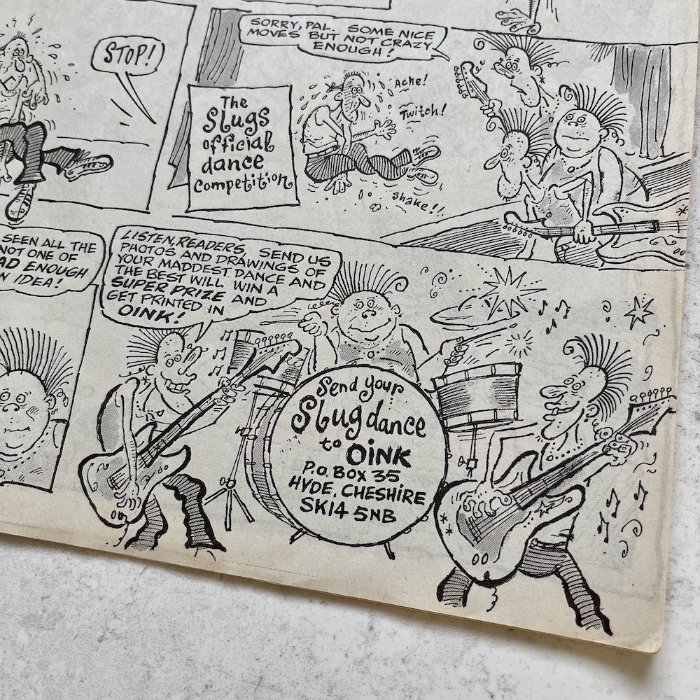 This and some censored, but still very obvious, bad language (in particular in The Slugs) shows OiNK wasn’t a young children’s comic anymore and I think that’s very sad. Its humour was always cheeky, rude even, but it had an innocence about it. While some contents, like most of what I’ve shown you here, could still fall under that category, this spread and a few others contribute to an overall feeling of OiNK no longer being the same publication I remember so fondly.