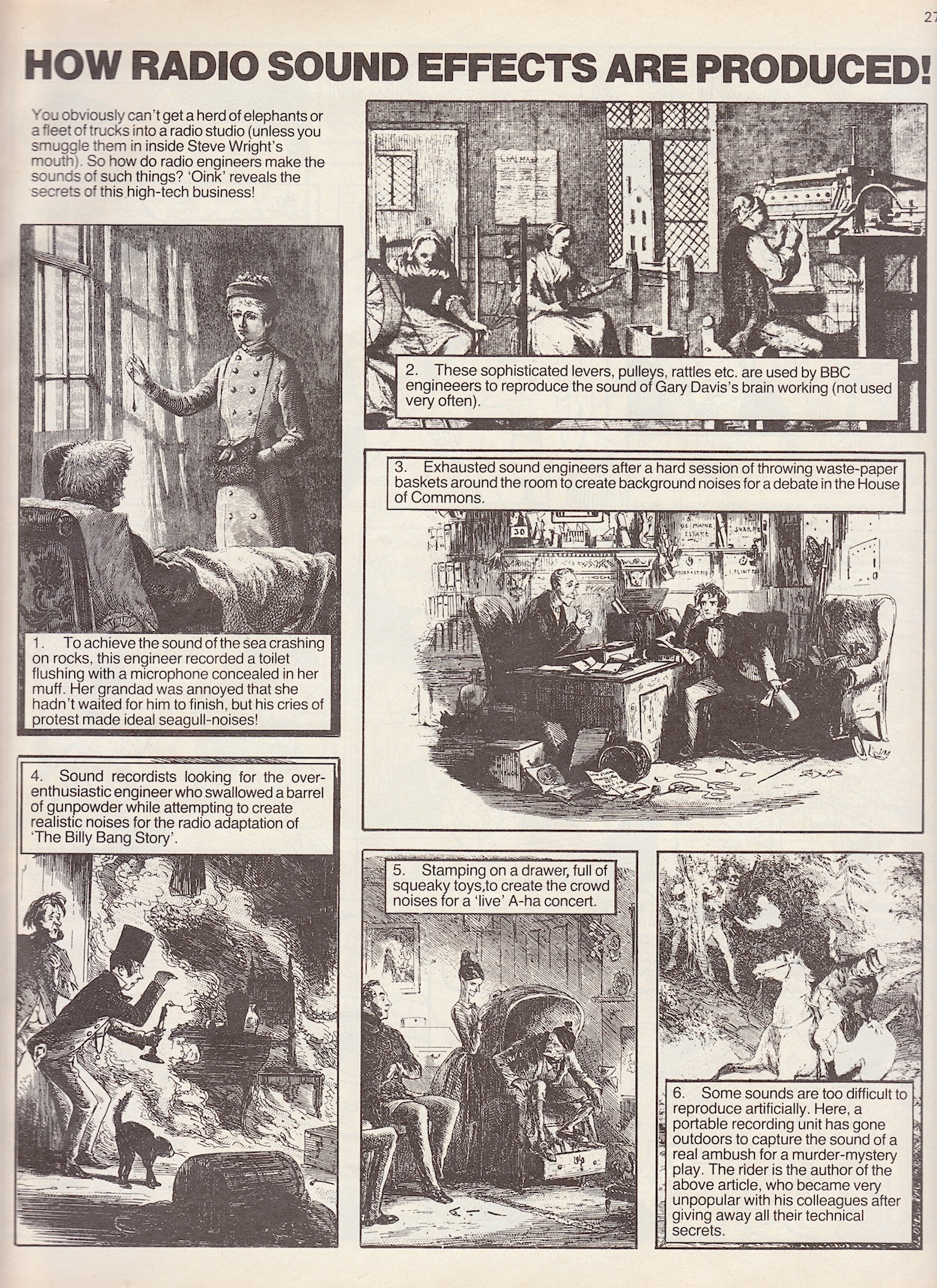 How Radio Sound Effects Are Produced was written by co-editor Patrick Gallagher and Marc Riley who put it together from plundering an old book of Victorian illustrations and creating brilliant captions to completely change their meaning. The first caption almost saw my comic being confiscated by our Latin teacher when my friend, who was sat right behind me, burst! A huge “HA!” erupted uncontrollably from him before he was able to stop himself. He quickly hid the comic inside a text book and said he’d seen something outside as the teacher glared him down. Have a read for yourself and see if you can spot the moment which produced this outburst.