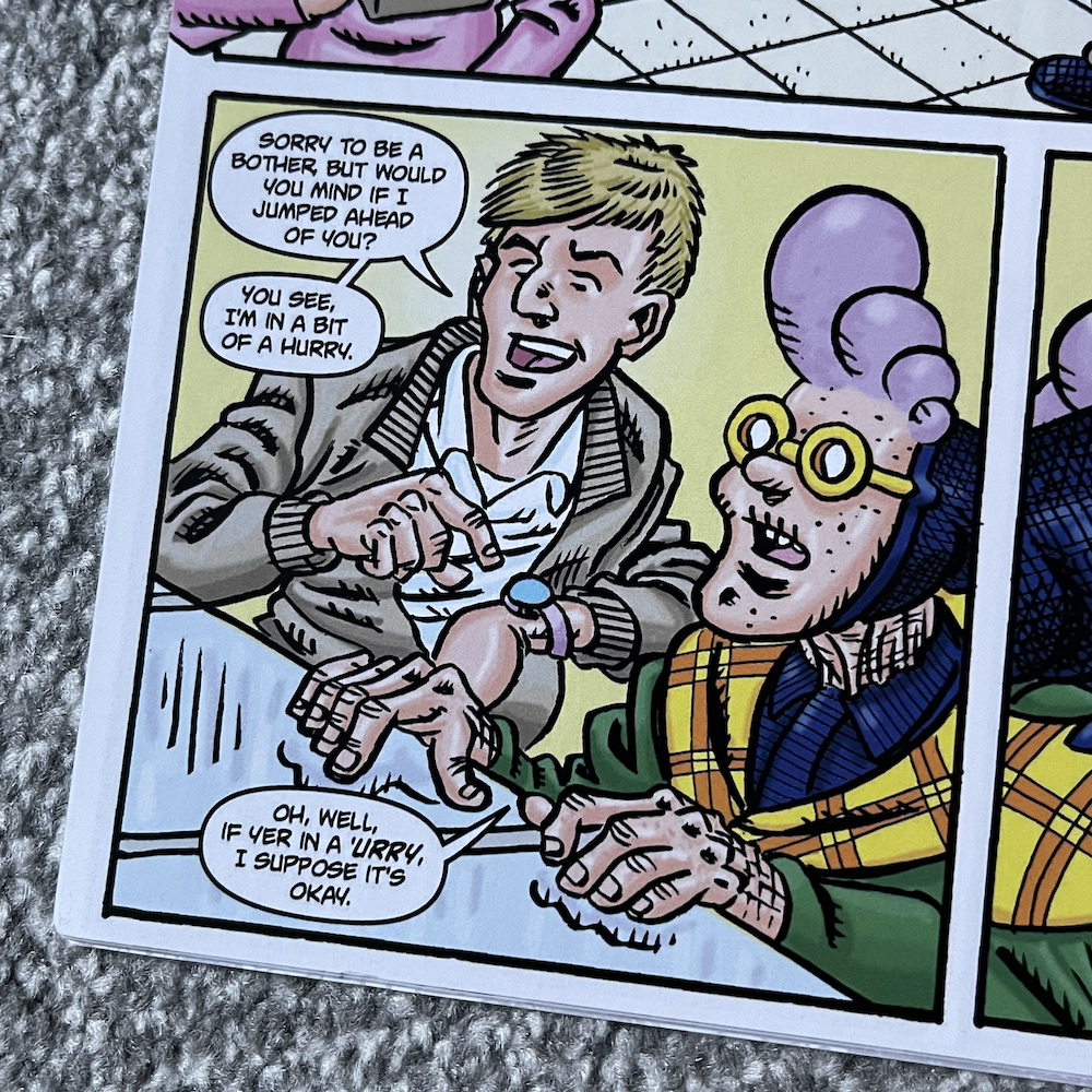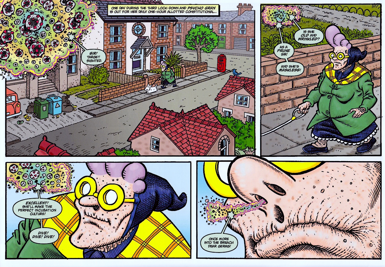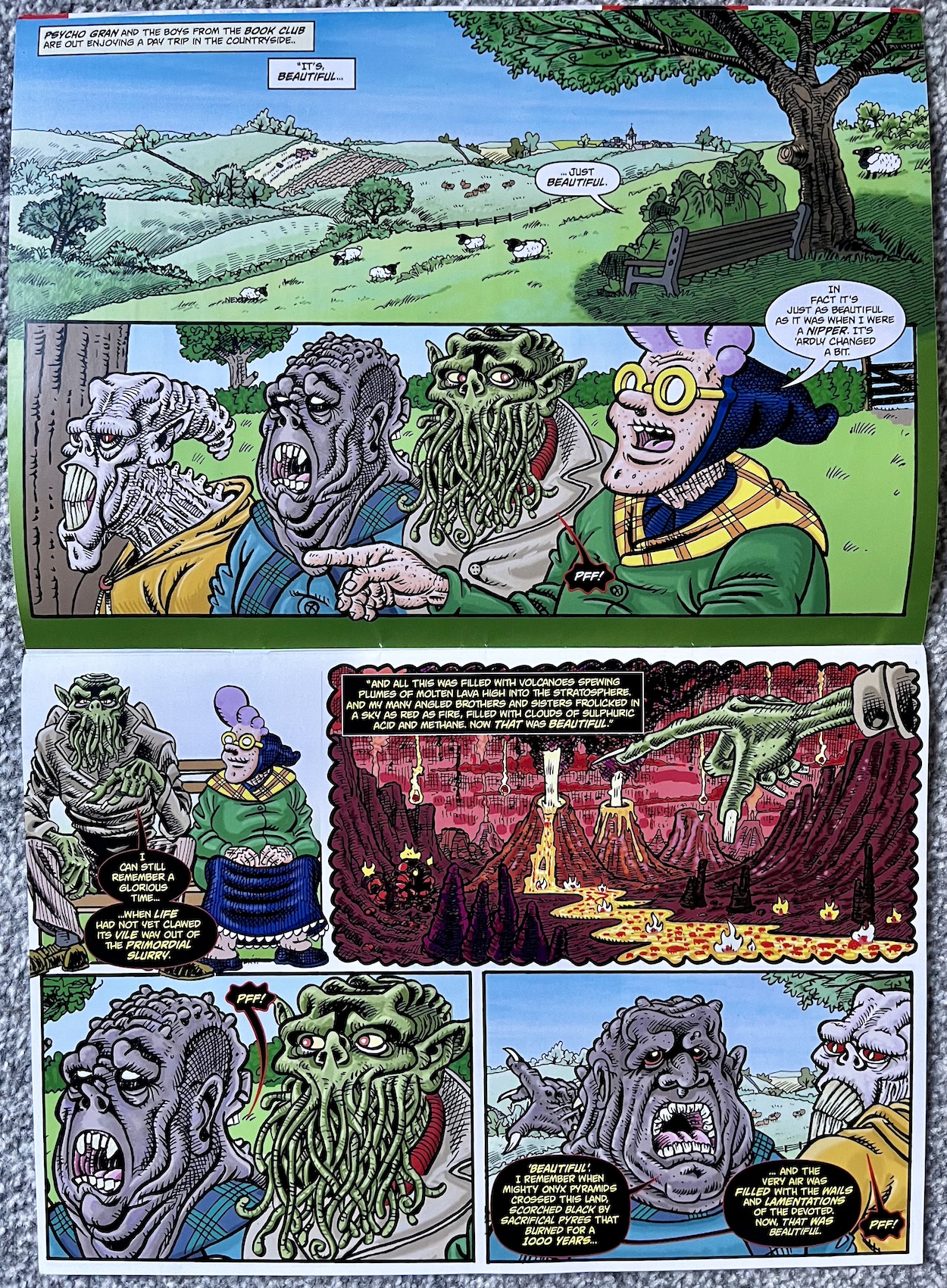 “Memory? I remember meeting Mark and Tony (Husband) and Pat (Gallagher) as they were cobbling the first few issues together. They were working from inside a cupboard in Manchester back then. It was hard to tell them apart because we all had hair then, including Pat. It felt like an exciting time to draw comics, and I could always meet a deadline because I learned to draw in my sleep thanks to Pat nagging me. Hey Pat! How are you?”