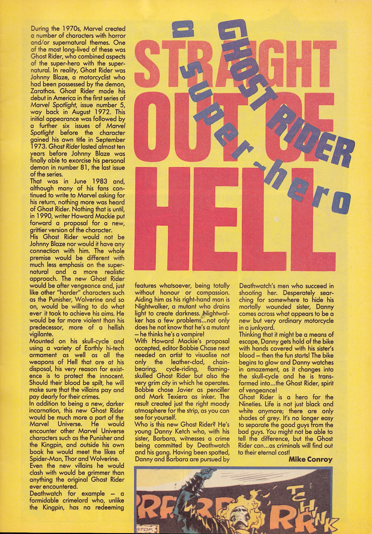 I’m sure reading this feature excited me as a teenager, with how it hypes the strip as a new Ghost Rider for the 90s. It certainly reads like the kind of page that would’ve pumped me up even further for the character and the future of the comic. I was so sure this was just the beginning of a long and happy journey with Danny Ketch and his spirit.
