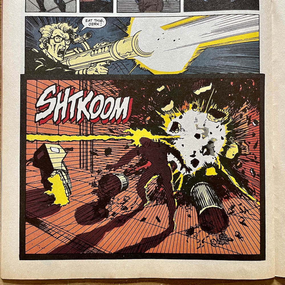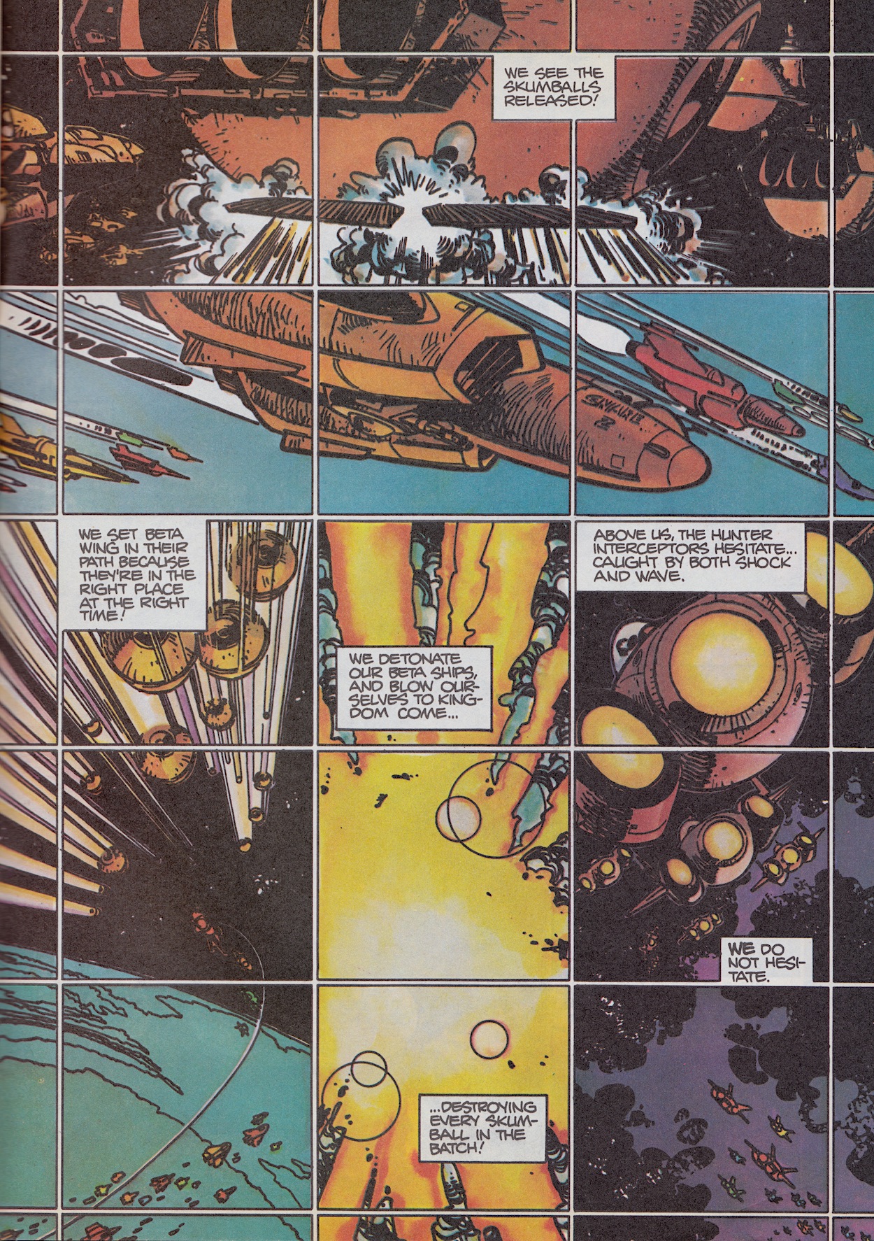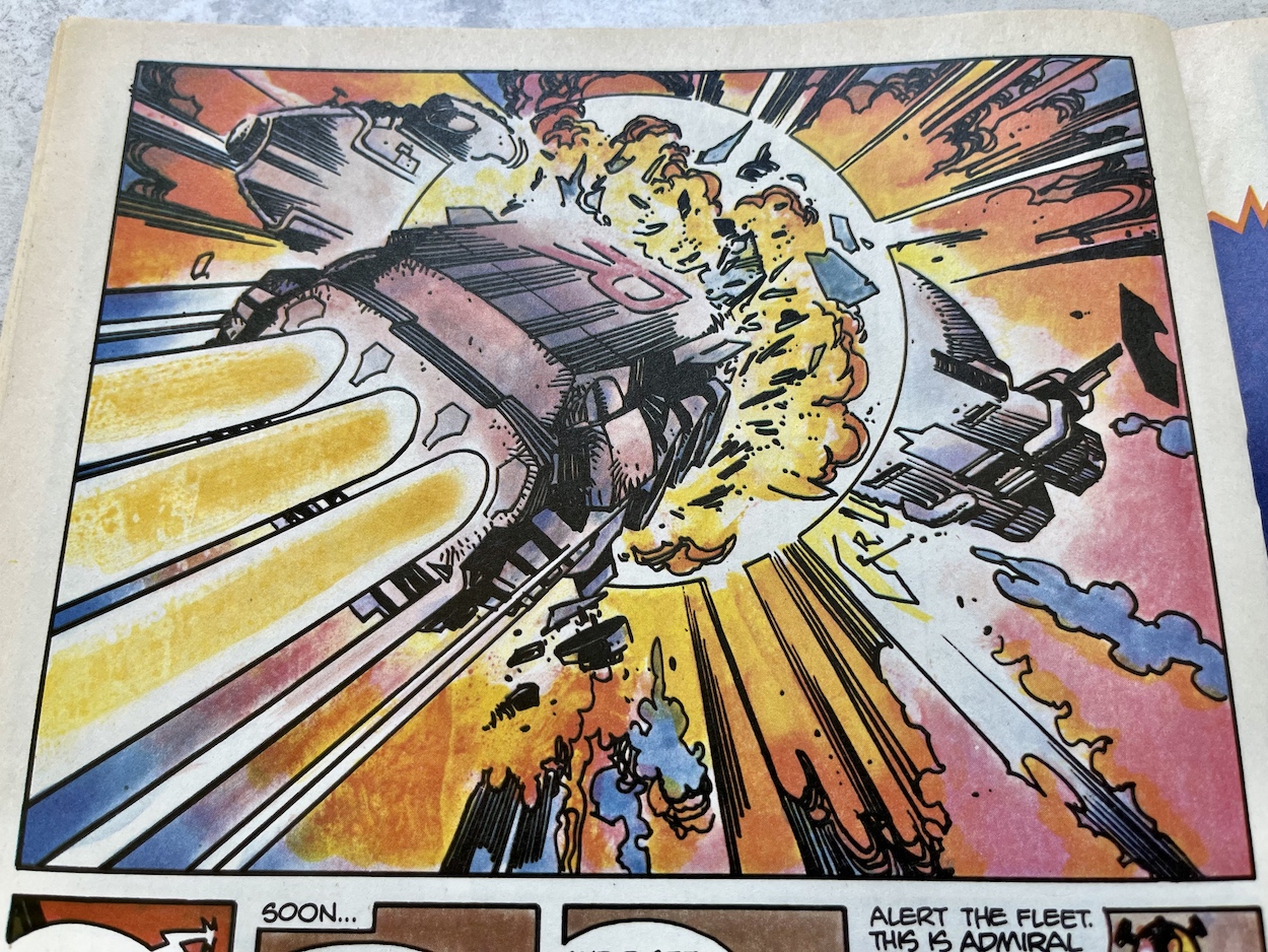 So, we finish our penultimate issue with the Star Slammers (written and drawn by Walt Simonson, colours by Louise Simonson and Deborah Pedler, letters by John Workman) and if I thought Conan’s strip didn’t have much going on then this one has absolutely nothing. At first glance it all looks very exciting, with a unique layout to the battle scenes and it entices the reader in, only to find not much there upon closer inspection.