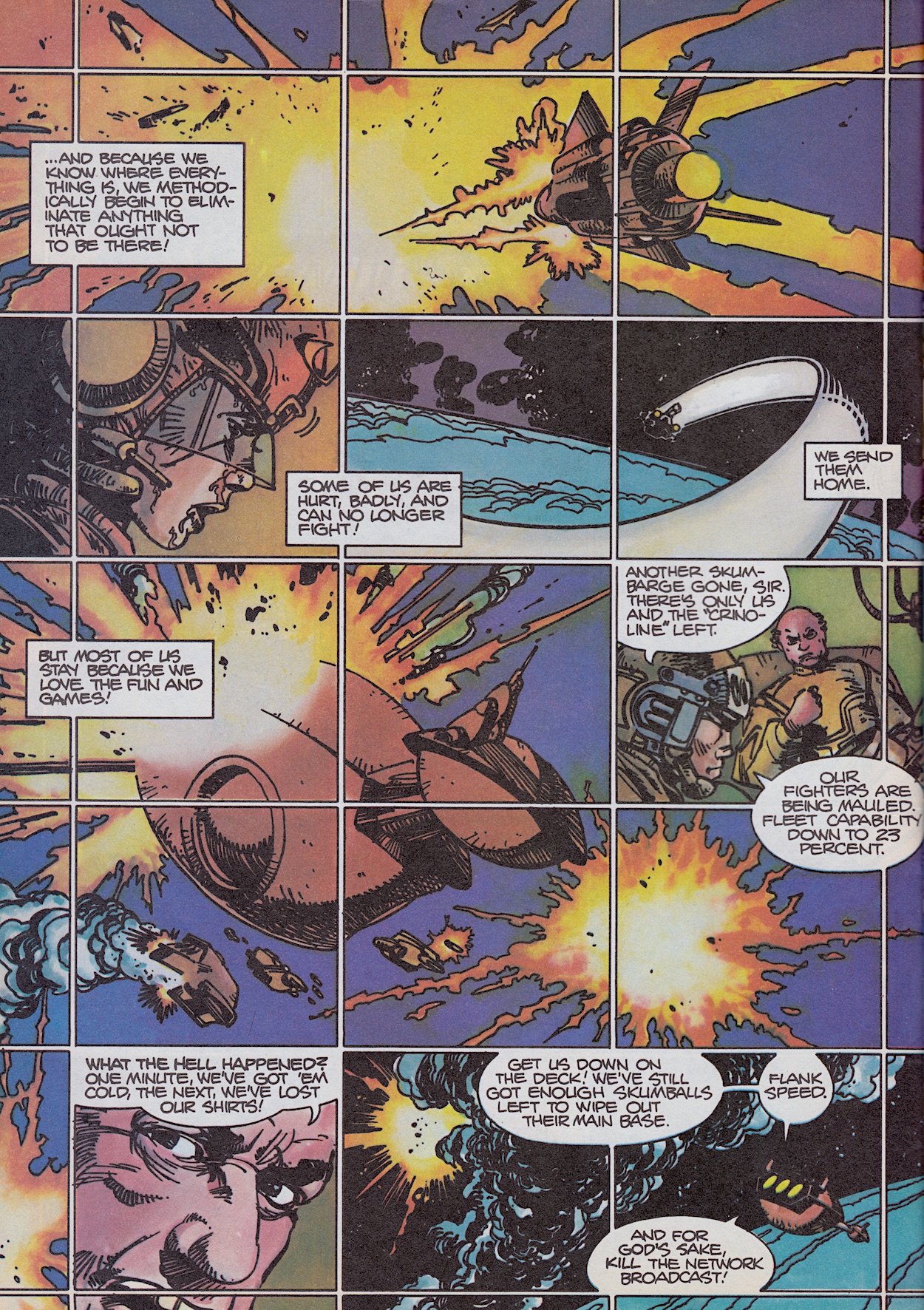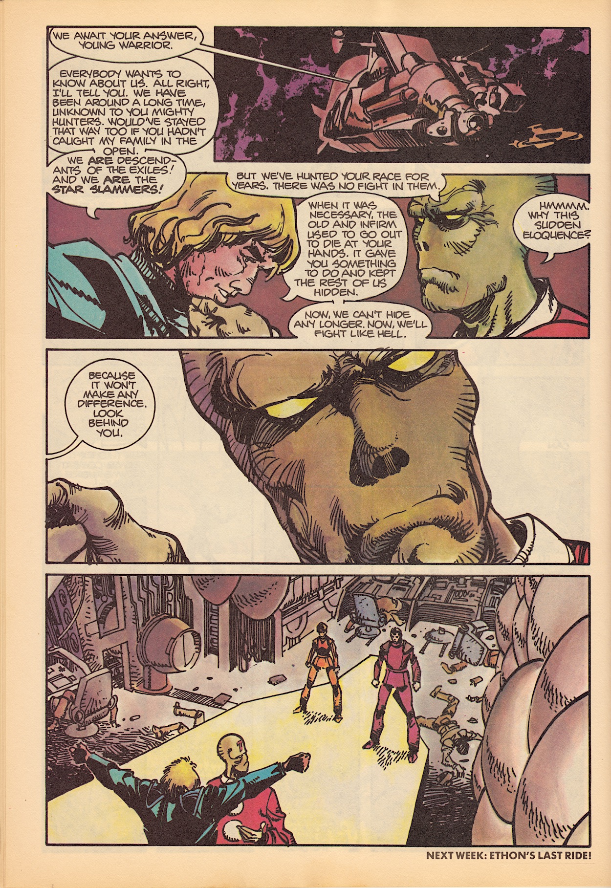 The way this is depicted, how they’re able to instantly react to the enemy from anywhere in the battle, how it turns on a dime from a slaughter to potential victory much to the shock of the enemy, is really very good. Alien Legion was due to replace Star Slammers in #11, so one week before its conclusion this strip finally became something of interest. It’s a cool few pages but with the lack of characterisation or storytelling in many previous parts it’s just too late to save it.