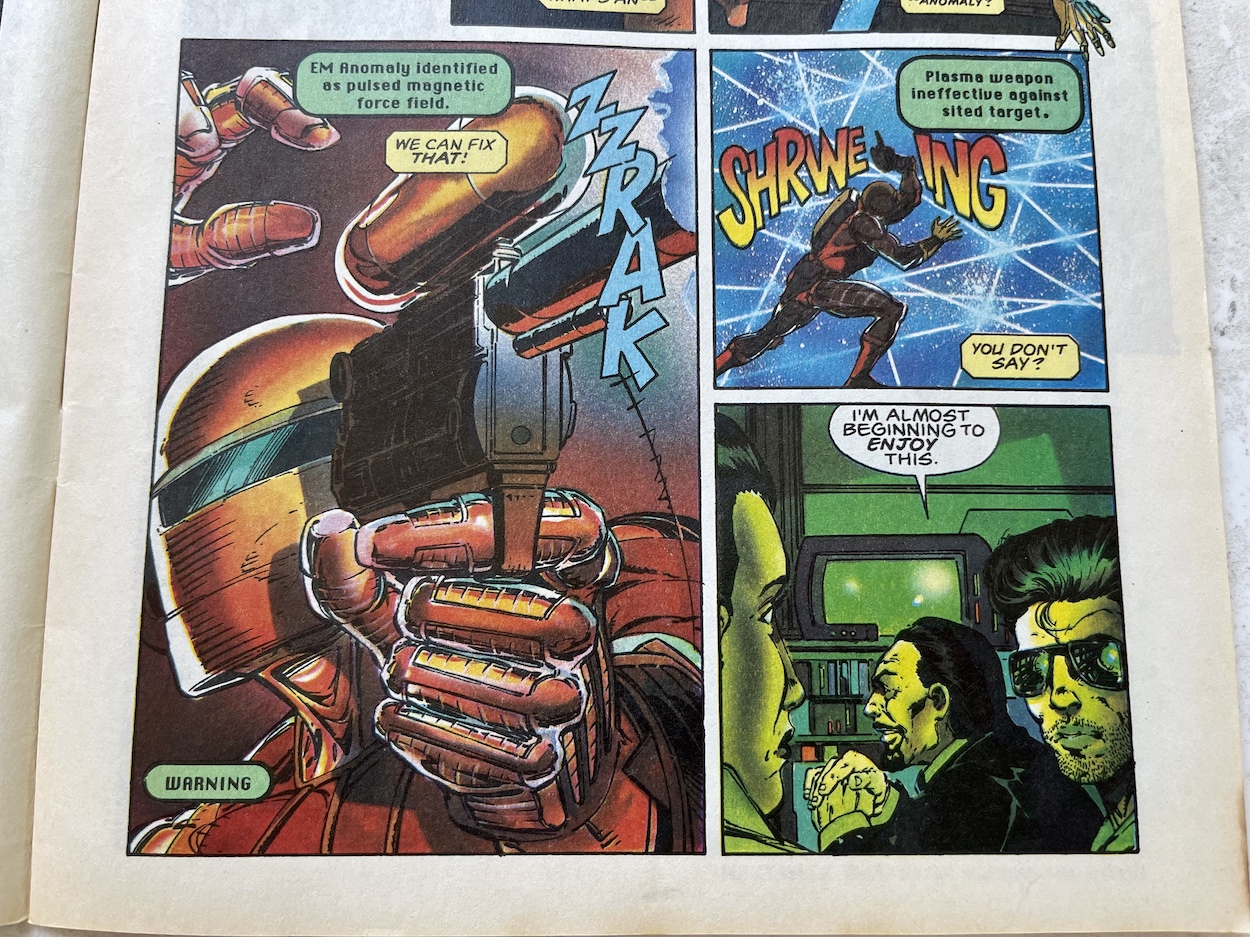 I’ve really enjoyed Deathlok. He was my favourite as a teen and it’s been brilliant to catch up with him again. The origin story was full of character and Dwayne McDuffie and Gregory Wright strike me as writers who’d make sure character development was key to the strip’s success. The action has been great, the interactions between Michael and the computer genuinely funny and I find myself really caring about what happens to them. One to track down for sure.