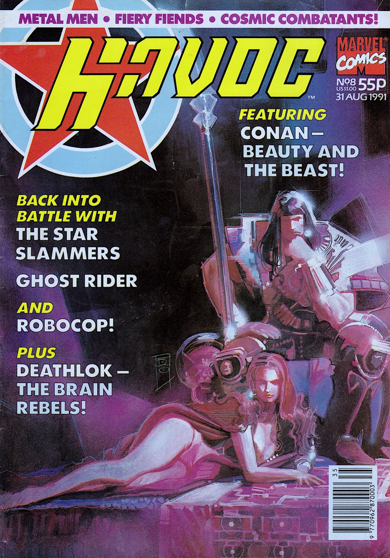 Conan the Barbarian was back in style. After taking a one issue break not only did a new story begin for the Cimmerian inside Havoc #8, he also got this glorious piece of cover art to announce his return. Although, ‘Beauty and the Beast’ could be the tagline for any of the Conan stories featured so far to be honest. It’s a nice cover nonetheless and it may only have been a week but I’ve missed having all five strips included.