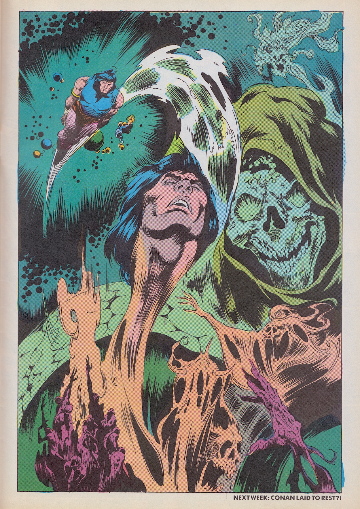 Conan collapses and his last view before he blacks out is of Tasmara being taken. We then see his consciousness slip into another realm, a realm of death and decay by the looks of it. You can see the Next Issue caption at the bottom of this next page. Yes, this is how Conan ends!