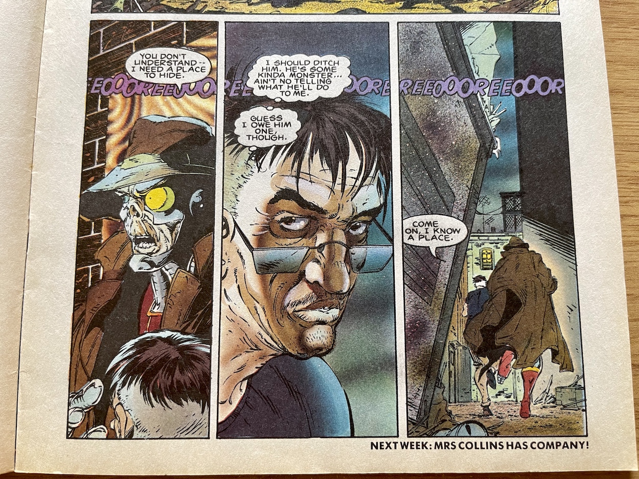 The gang war over the briefcase has escalated to murderous levels, endangering innocent lives and the Spirit of Vengeance is having none of it. There’s a lot of mystery still around the main flaming character and Danny is only slowly beginning to realise this could be his life now. It’s building momentum, it’s pace is quickening but it’s also taking time to establish its characters. As a result this feels like the most bedded in strip in Havoc. Plus, that’s just a really cool image to end the issue on.
