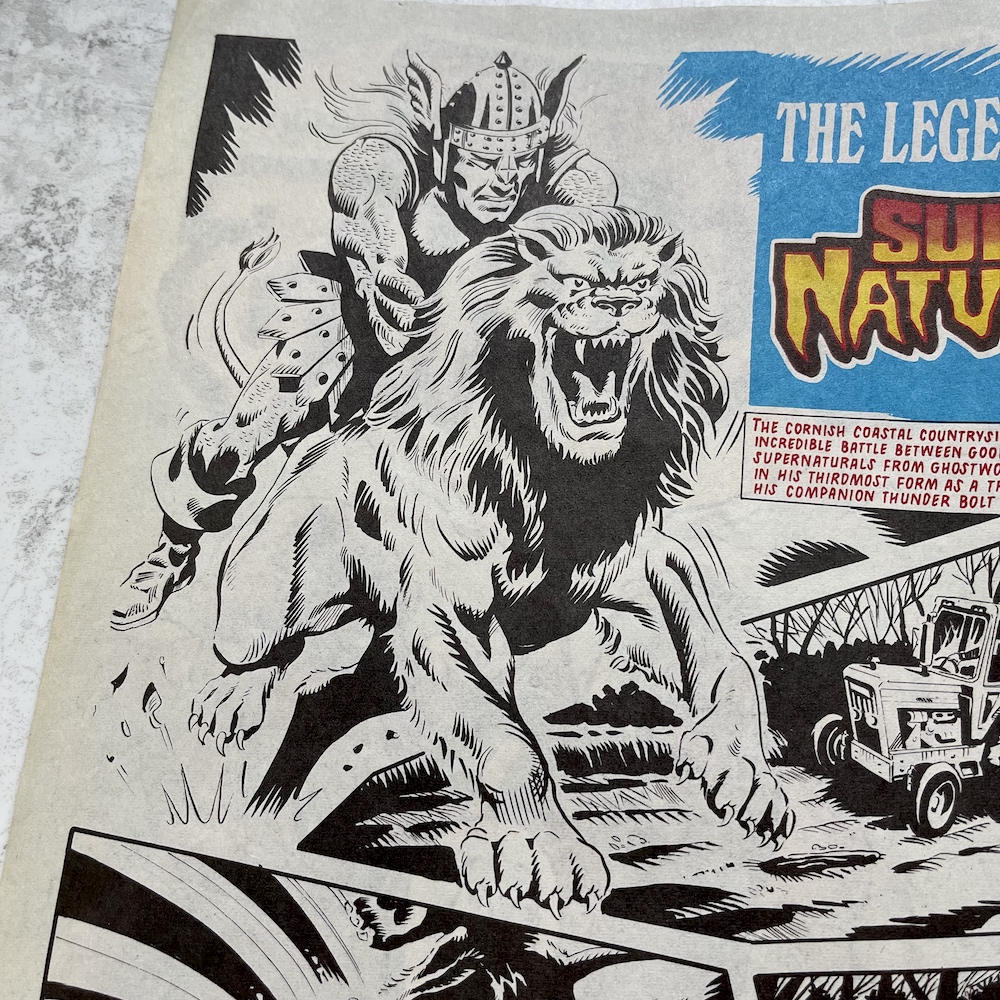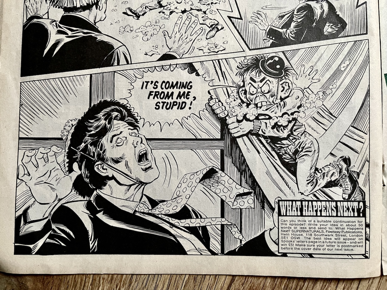 Alas, we come to the end of a superb run of comics. Editor Barrie Tomlinson’s Super Naturals has been such fun and, while there’s still a special to come, the fact this is the end of all the ongoing serials is a sad moment. Things kicks off for the final time with this intense image of the doll by Francesc Masi and I’ve some faint memory of seeing this cover at a few friends’ houses at the time. They all loved being scared by its story.