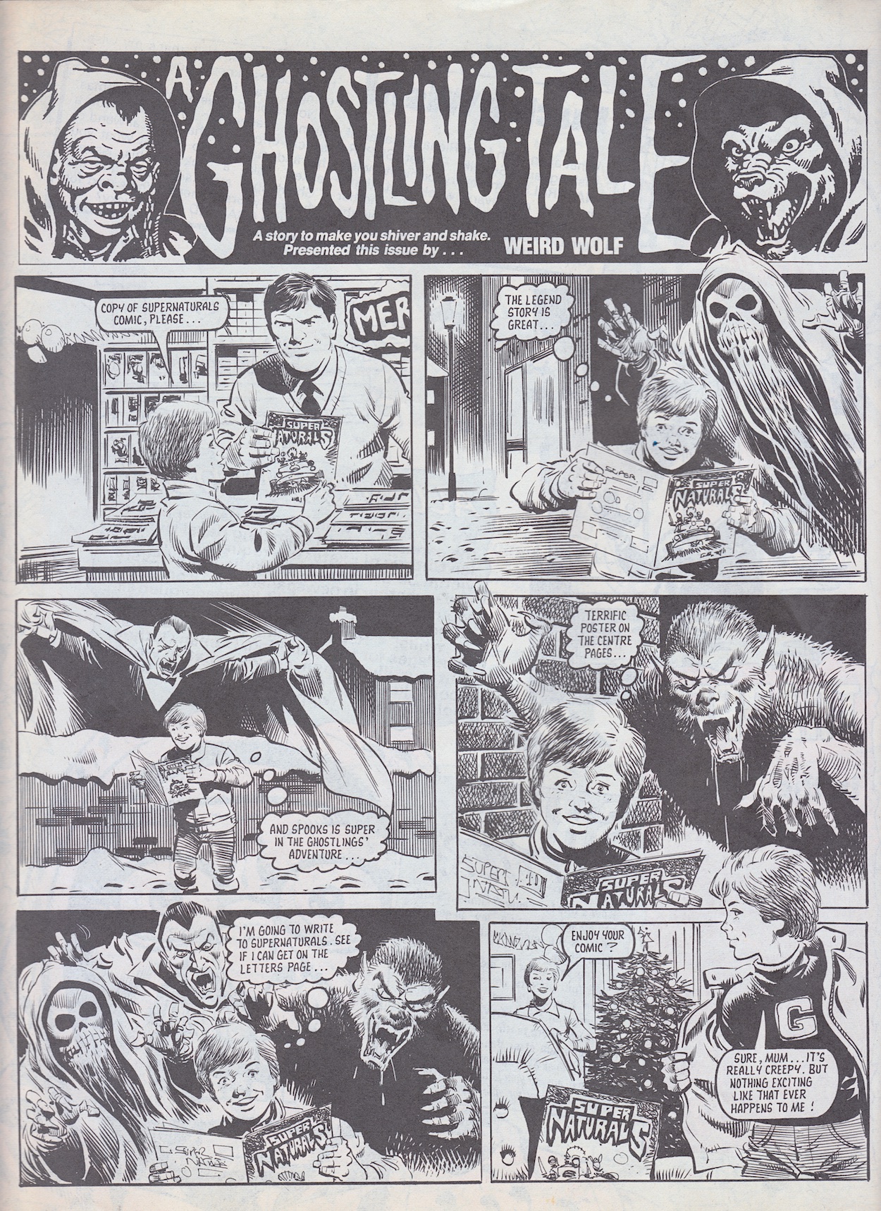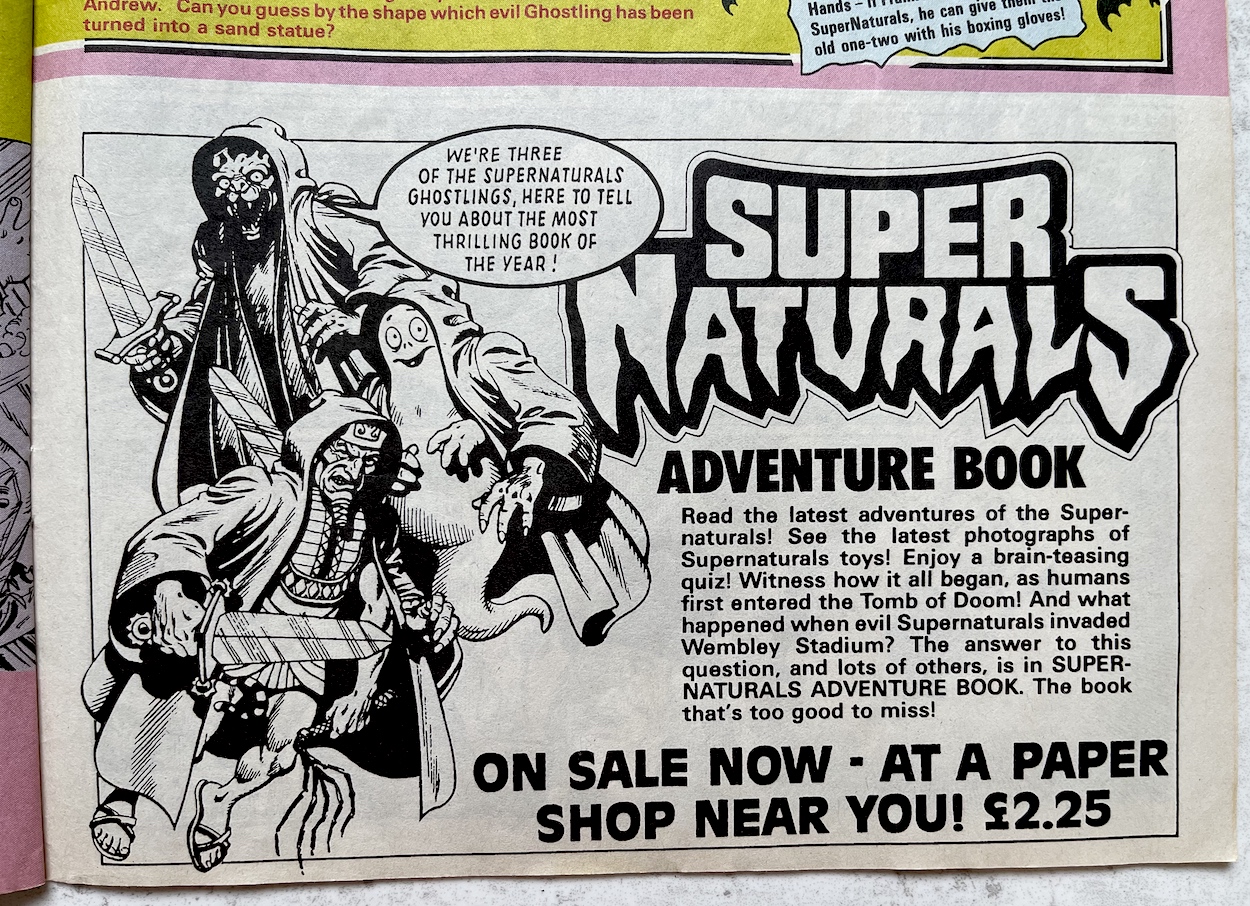 This sad news is quickly followed up by this full-page advert for the Super Naturals Adventure Book as a way of perking up the readers and I’m sure for regular devotees it helped ease the pain. The thing is, as I now read through the rest of this issue nothing is jumping out at me with any form of recognition. It could be I simply don’t remember reading these stories, but I now wonder if I read them at all when I got home that day, knowing there were no more to come.