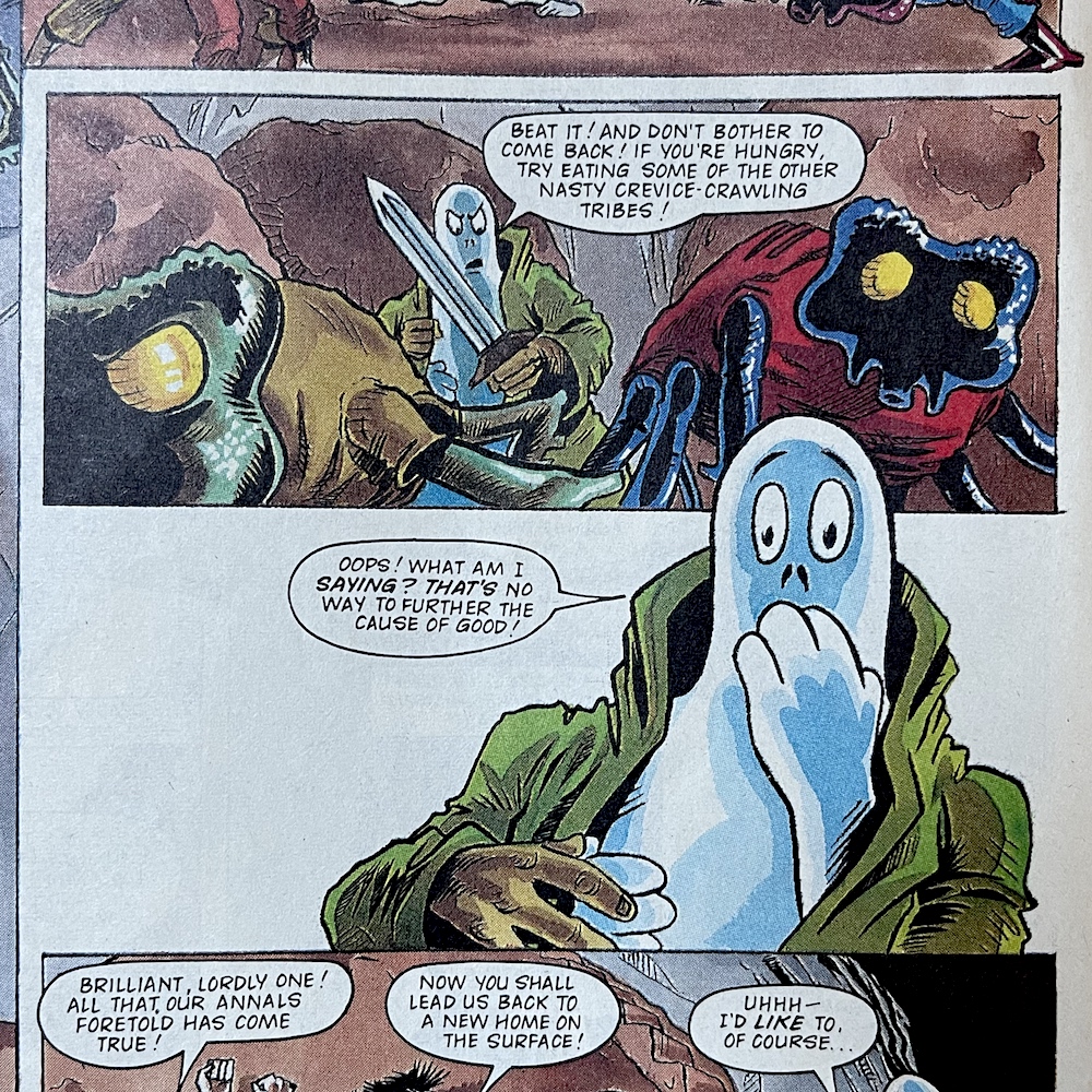 I reread the comics I had and loved them, so one day on the way to the dentist I picked up the latest issue. It’s funny the things we remember, isn’t it? I have this memory buried somewhere in my grey cells of being in the back of my late nanny’s car, with my mum in the front on our way back home. I was excited because these toys and comics were going to be my new fascination and the first story (above) completely rocked! I loved it! I was convinced I’d found my new obsession, so you can imagine how gutted I was when I read Spooks’ introduction.