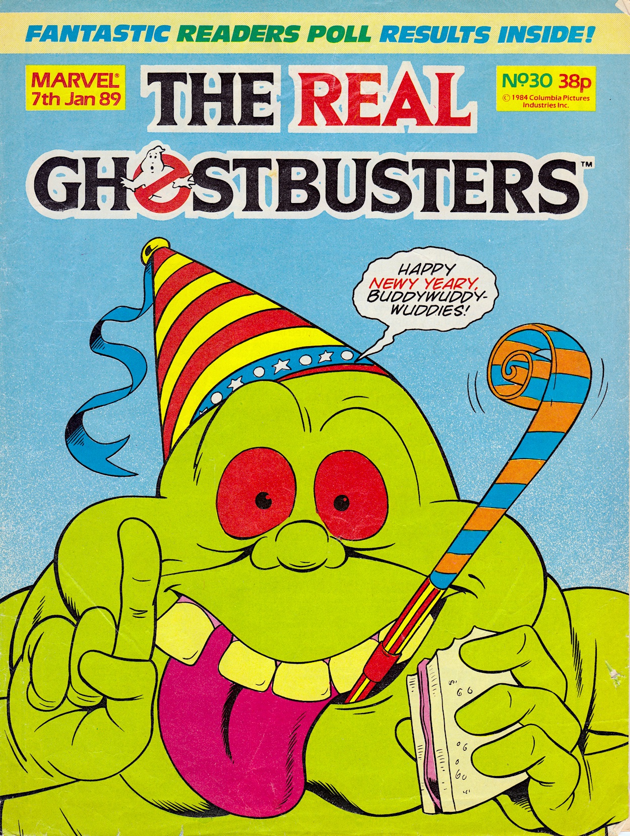 Moving on to a comic I wrote about for the 33rd anniversary of its first issue. I enjoyed that so much I committed to covering the comic in some fashion in the future. However, with over 190 issues to collect first it’s going to take a while. (Remember, these cost money!) What I can show you now are the first three years of festive fun. Taking advantage of its weekly schedule, The Real Ghostbusters had two celebratory issues every year, one for Christmas and one for the New Year, as you can see below.