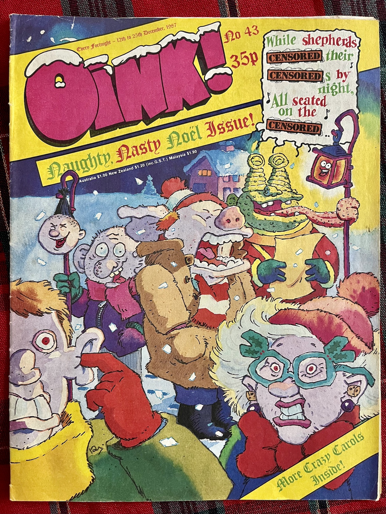 With the New Year holiday named HOGmanay in Scotland it’d be rude not to do a themed issue in a comic called OiNK for that part of the season. Both of these celebratory issues are also some of the best the team ever produced, with covers by the legendary John Geering and Les ‘Lezz’ Barton respectively. In fact, #43 and #44 form the final two issues of what I personally saw as OiNK’s Golden Age, a run of pretty perfect comics which also included The OiNK! Book 1988.
