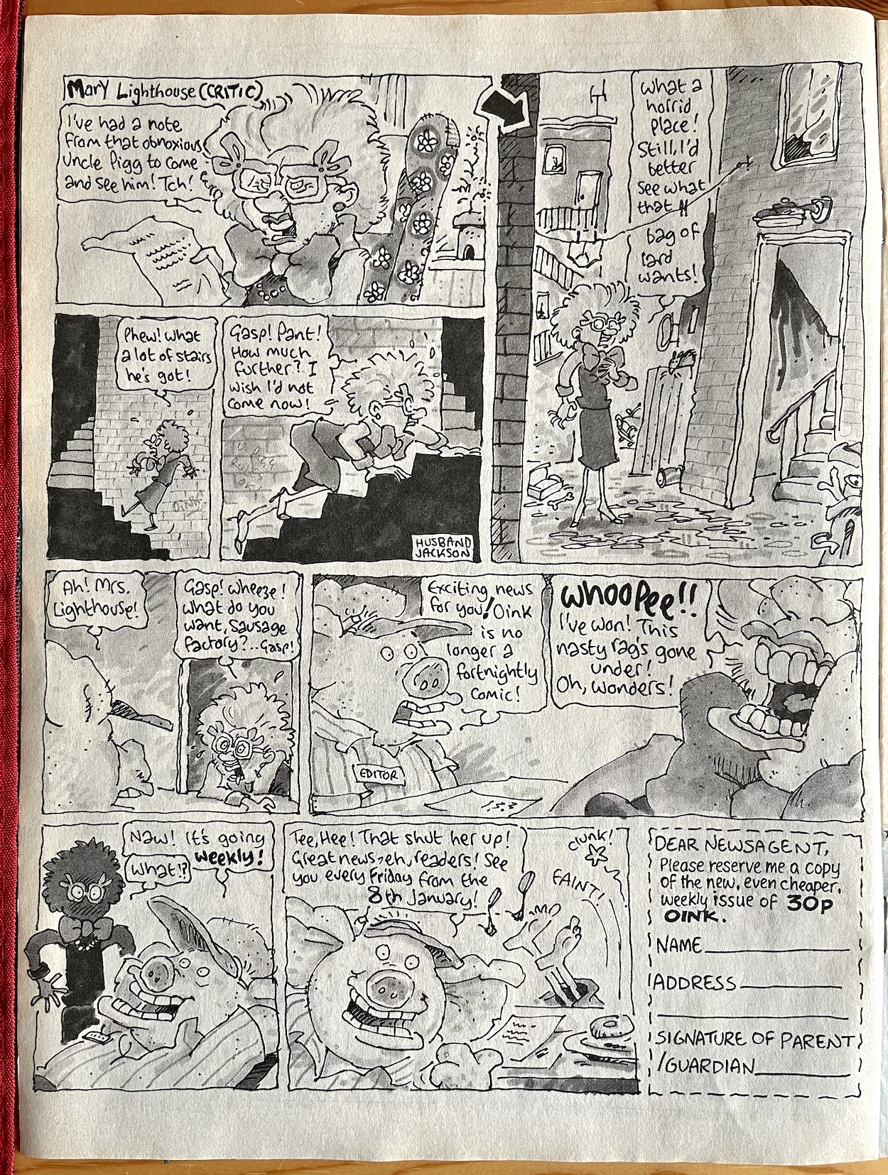 That doesn’t sound like a bad thing and it’s why I particularly liked this entry in the series. In this story he would’ve gotten away with it but ends up in a rather worse state than he was in the first place, and all thanks to his mum! Elsewhere on the blog make sure you check out a clever and very funny Buster strip written by Mark Bennington and drawn by Mike in one of the first issues after the OiNK merge.