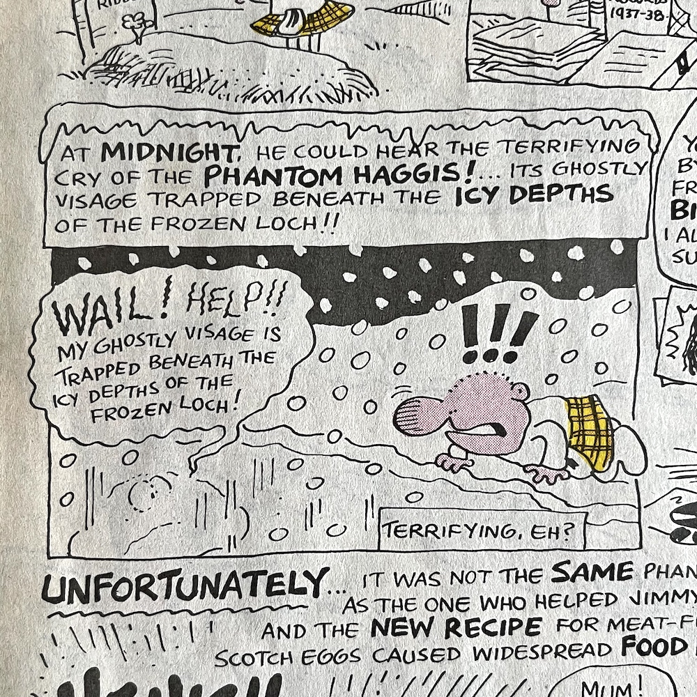 Once again it sticks to IPC Magazine‘s (taken over by Fleetway Publications) Buster, Whizzer and Chips and Whoopee comics but it was all brand new to me. I’d been collecting OiNK for over a year by this point, a title that often took the hand out of these older comics. However, Big Comic Book 1988 contained a feast of goodies and plenty were still hitting the mark, producing enough smiles for me to see it all the way to the end over the New Year. There’s definitely a marked improvement over the choice of strips compared to last year’s book. With the hindsight of reading this in 2023 more of it holds up to the passage of time too.