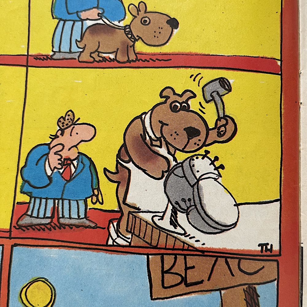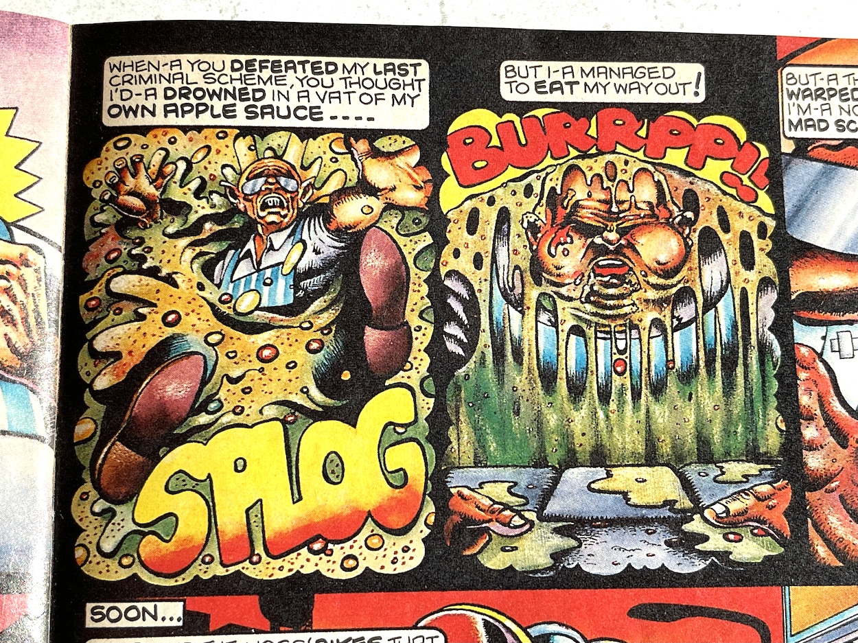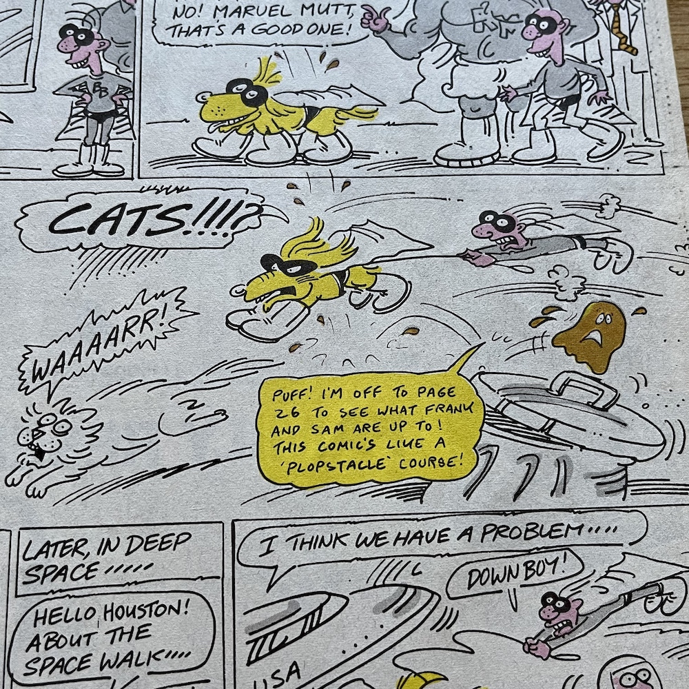 For the first time we see Horace (Ugly Face) Watkins playing football, something which would lead to a huge multi-issue story for the character in future issues, a little plop drawn by Patrick Gallagher invaded a handful of pages throughout the issue such as Rubbish Man’s, and in the latest Butcher Watch a pig by the name of Stig the Pig thinks he’s finally won the battle with Jimmy ‘The Cleaver’ Smith, with wonderfully Banx’y captions.