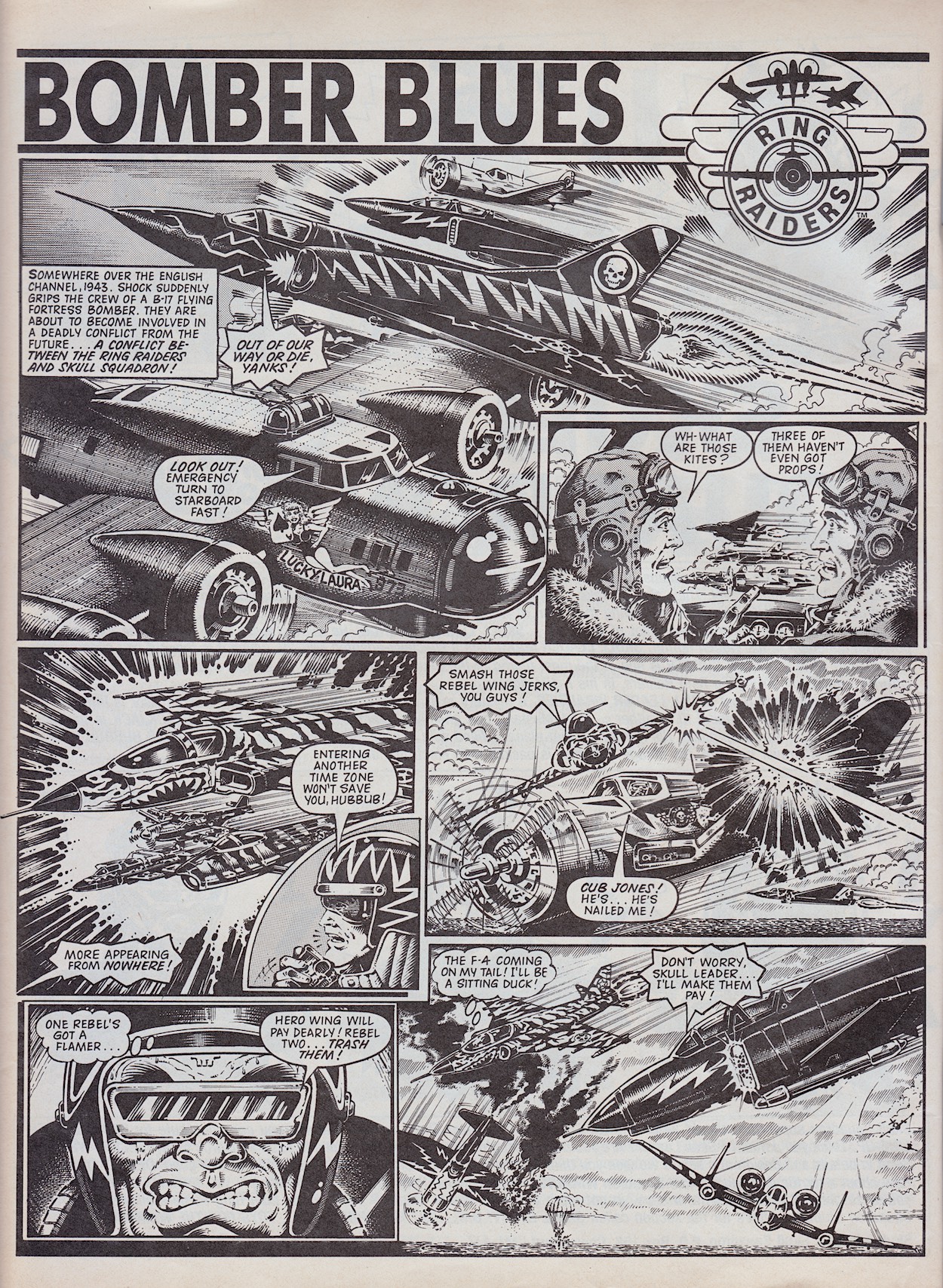 The gorgeous new Ian Kennedy cover portrays the first original strip inside which stars all of our team leaders, the first time this has happened since the preview issue in fact. The Games, drawn by John Gillatt (Jet-Ace Logan, Billy’s Boots, Ring Raiders), is a six pager that is annoyingly split into two-page chunks throughout the first half of the issue. It quite clearly wasn’t written to be read this way, meaning it keeps stopping mid flow. Still, it’s nice to see the whole team together and the first couple of pages do get the blood pumping.
