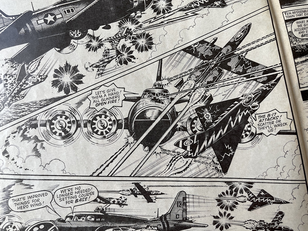 Earlier in the year Eagle announced there would be a Wildcat Holiday Special and an annual. While the latter never materialised I think it’s clear the content for it ended up in the Winter Special instead. (Just like the OiNK Winter Special in that regard.) Things kick off inside with a reprint of the preview issue’s cover and strip, a black and white reprint of a former gorgeously coloured Joe Alien pin up by Ron Smith (which results in his eyes looking hauntingly dead) and then two whole pages are taken up with a ‘Spot the Difference’, which boils down to a page from Eagle (I presume, I’ve never seen it before) reprinted twice.