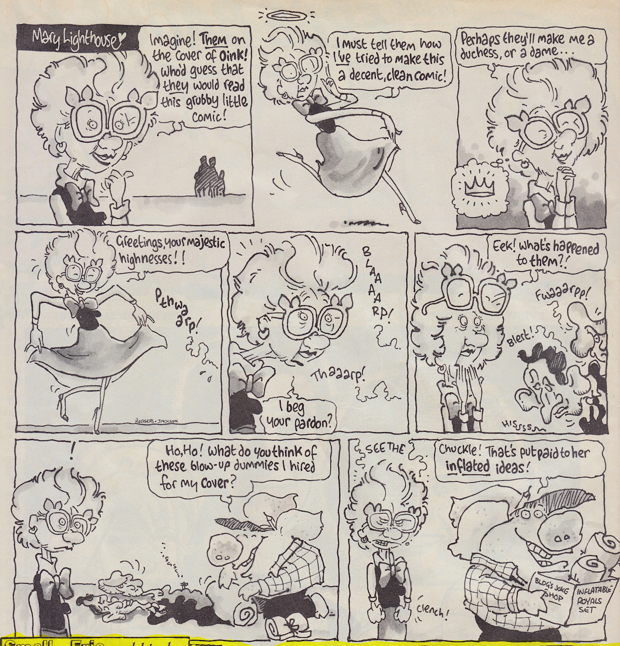 Of course there were other cheeky examples of what could be created inside the issue and a request for pig pals to send in their ideas. As we open the issue it’s again up to critic Mary and editor Pigg to introduce the comic, this time by following on directly from Mary’s quite startled discovery on the front page.