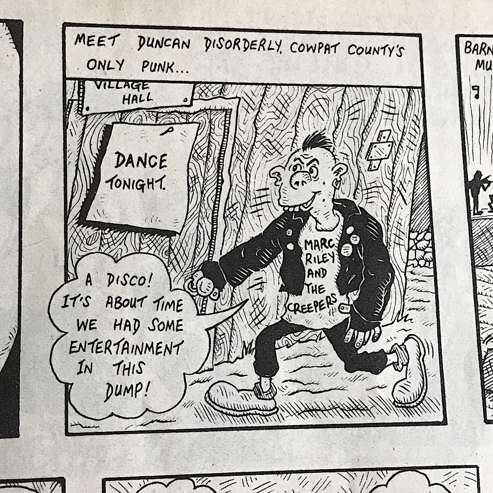 One of the main contributors to OiNK had never worked in comics before, but was the lead singer of the band that received a little promo above in Cowpat County. Marc Riley is better known today as a BBC Radio 6 Music presenter, previously of Mark and Lard fame on Radio 1. Just for the record, our Marc was ‘Lard’.