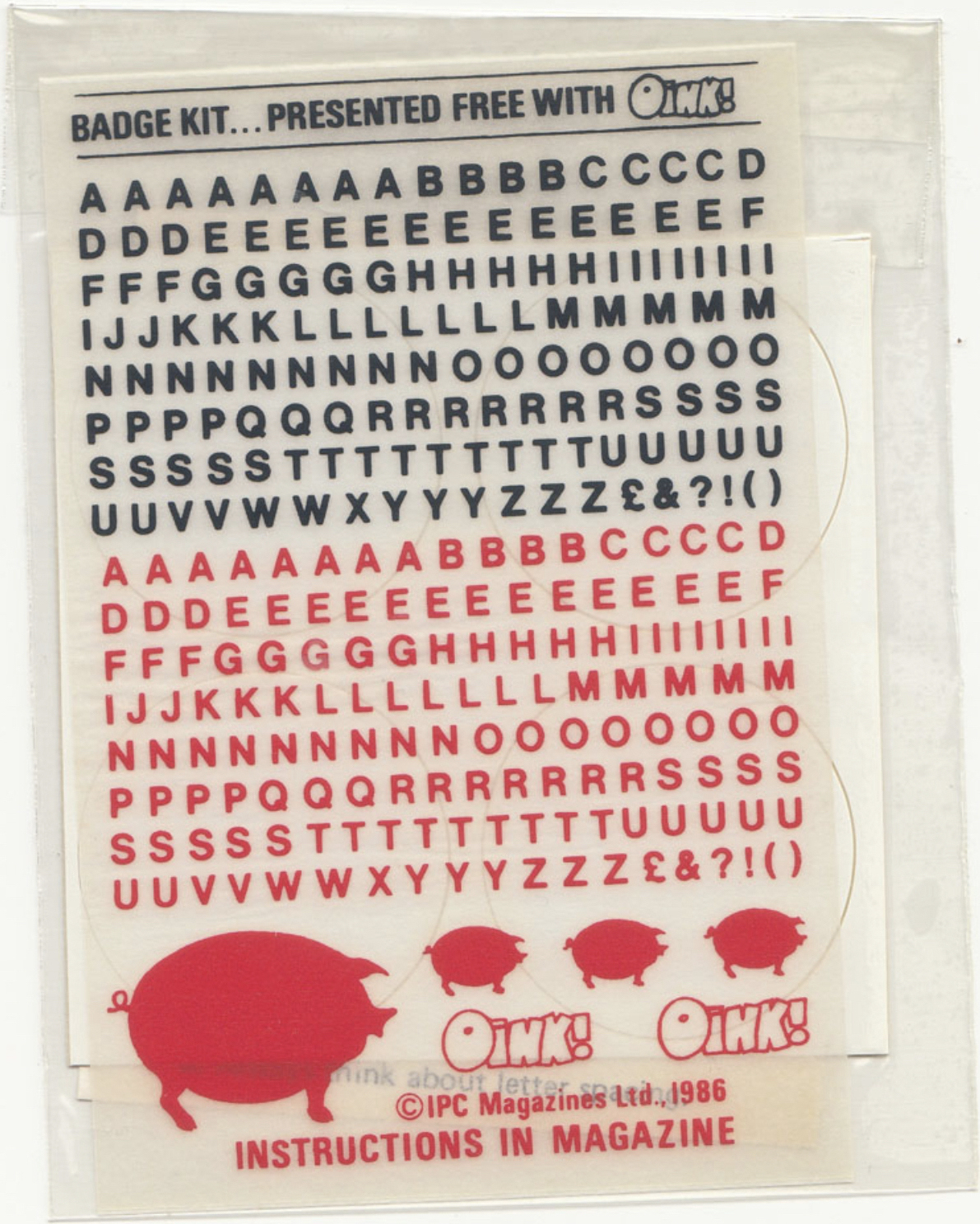 Let’s try to forget about how old the image of those two boys makes us feel and instead concentrate on the funny picture by Steve McGarry. This was all to promote another free gift, a set of blank sticky badges with letters, numbers and images which could be rubbed on to create anything the young readers wanted. They’re a bit like those old pretend tattoo rub-on transfers we had as kids, which never transferred in one piece and would look a right mess on our arms.