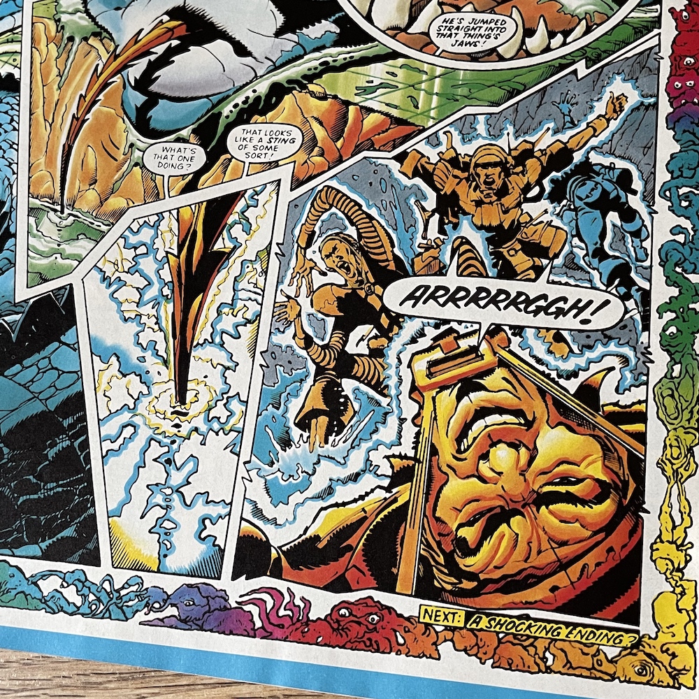 I’m not going to go into detail about logistics or the science, this is a fun children’s comic after all and I’m not about to start taking it all too seriously. But even from a story perspective it just doesn’t make sense and is yet another seemingly random event plucked out of thin air (in this case very thin air) just to be bigger and more exciting than the previous one. Maybe I loved it back in 1989 but I review these classic comics as I find them now, with no rose-tinted glasses and I just want another well constructed plot for one of my favourite comics characters, like we had for the first half dozen issues. But back to that cliffhanger I mentioned, when I suddenly found my interest piqued again.