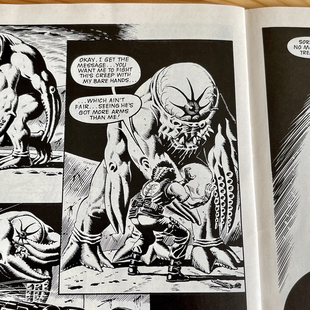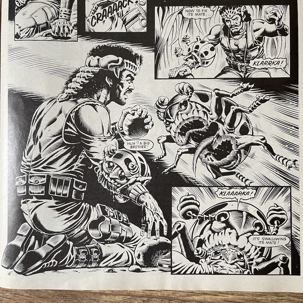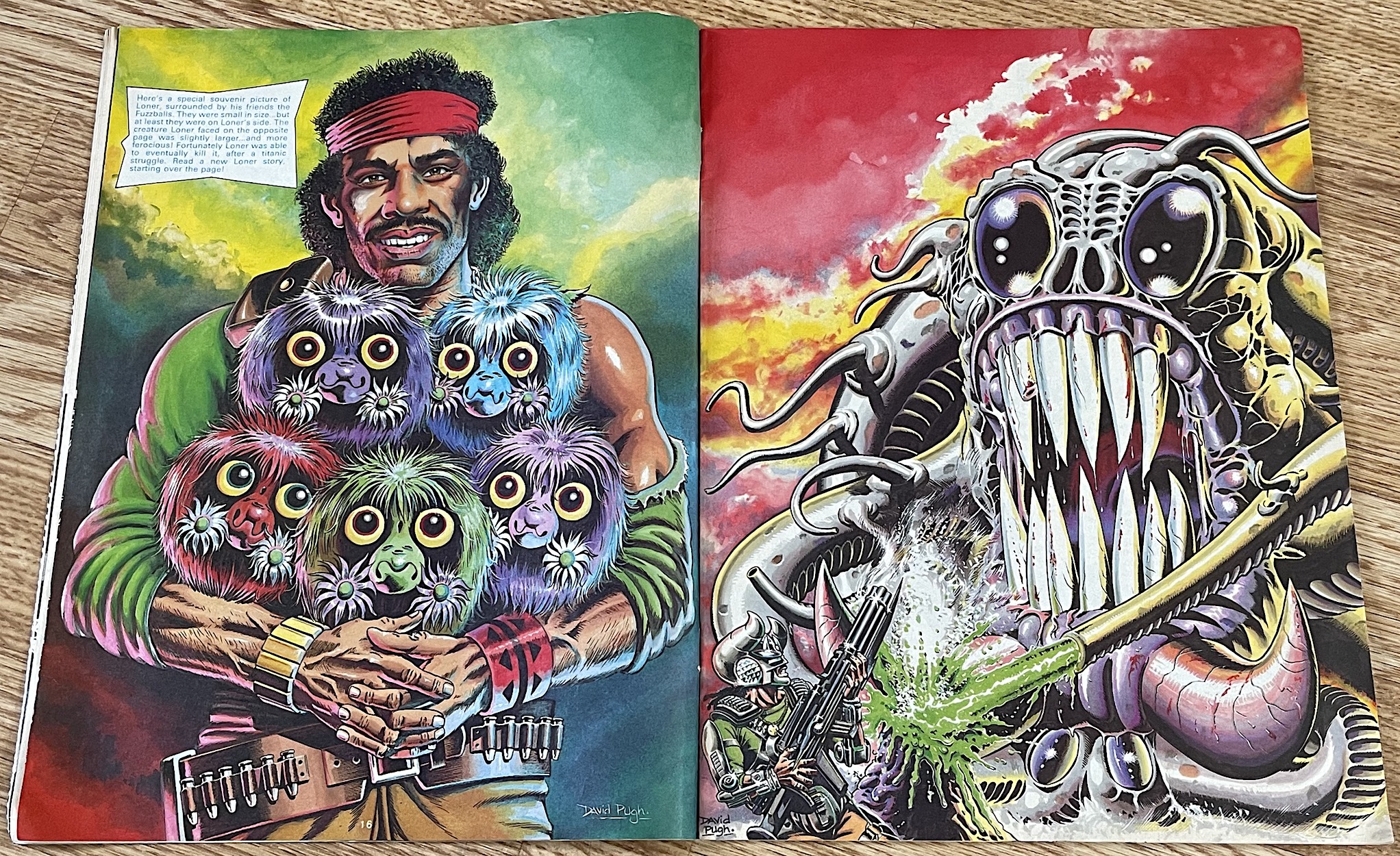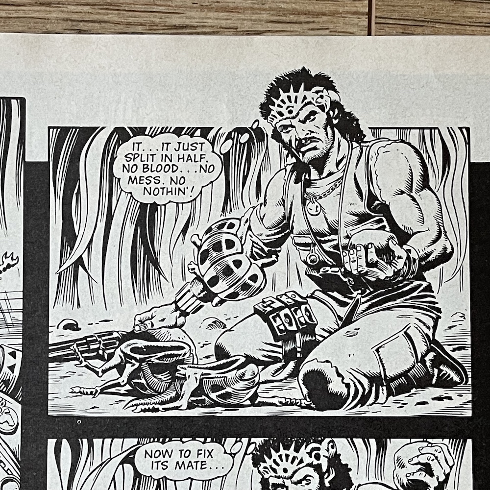 In the end, the creature had been a warrior and it was always going to be a fight to the death, but Loner had saved him from the underground slug beings and he’d had to repay that debt first. This would’ve made for a great multipart strip in the regular comic, it’s full of character and paints a wonderful, exciting picture. Such a shame it’s only illustrated by images from unrelated stories.