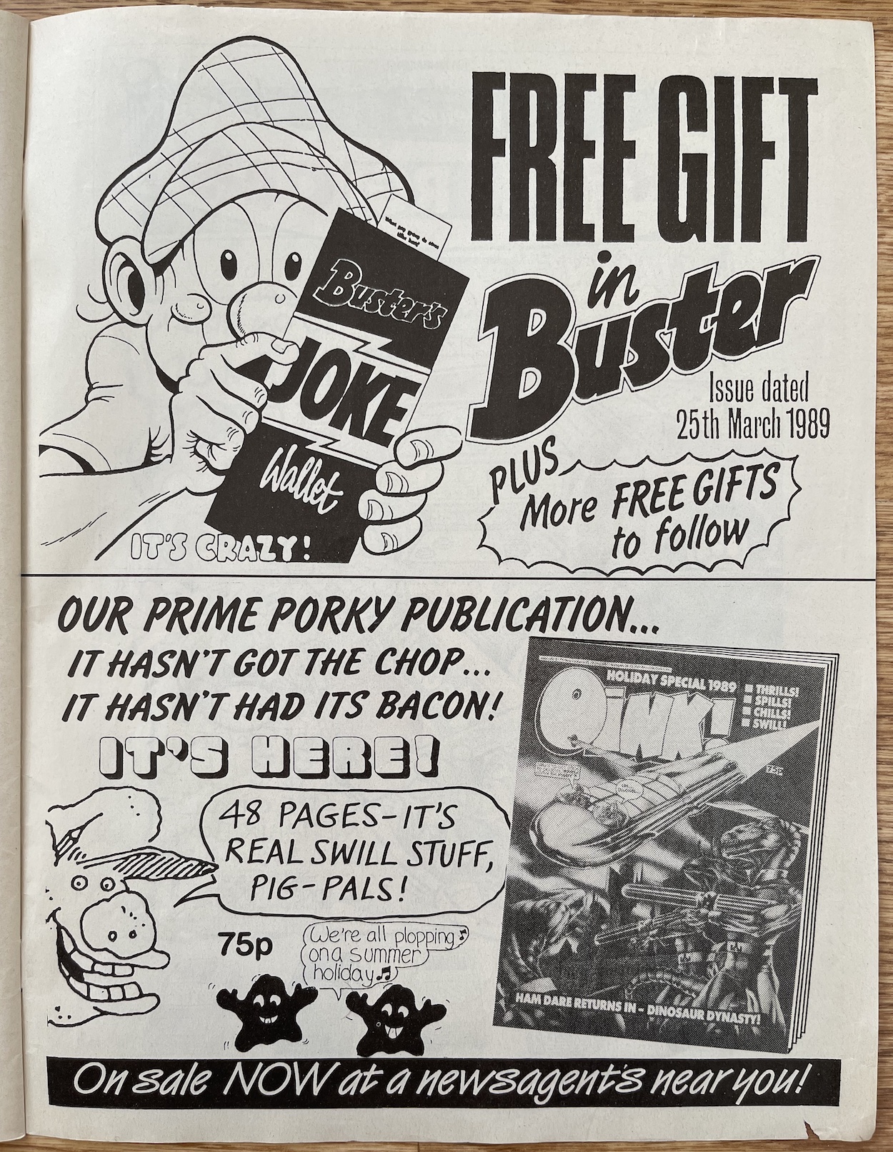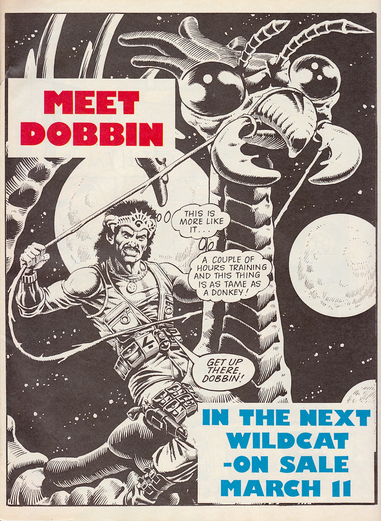 As a child I was devastated. Not again! I obtained my free Wildcat Preview issue with the final edition of OiNK which had crushed me because I’d never had a comic cancelled on me before. As I’ve mentioned previously it had felt like OiNK was passing the baton to Wildcat and so this was a complete shock, especially at only 12 issues in. As usual the news was promoted in as positive a light as possible and on the next page was this advert for the first of the combined issues.