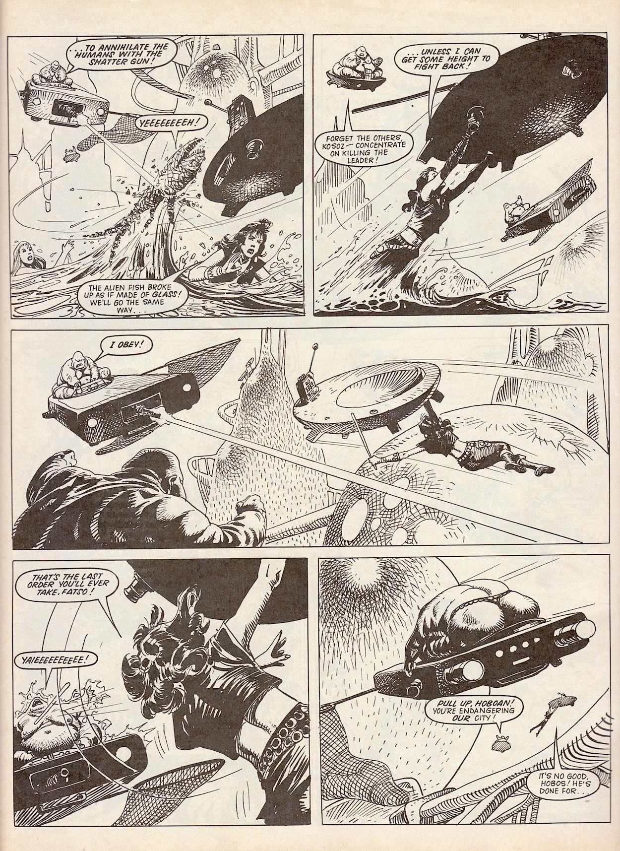 The ending reminded me I’ve been remiss with my Wildcat Death Toll of late. In the Christmas issue not one person died (suitably enough) and since then I haven’t picked the count back up again. So, with three dead in this story alone, and all six human characters killed off in last issue’s Complete, where do we stand? Going back and adding up all the deaths from all strips, in all issues, with only several hundred humans left alive in the universe editor Barrie and his team have seen off 32 already! (Plus the wonderful Gliz alien character.)