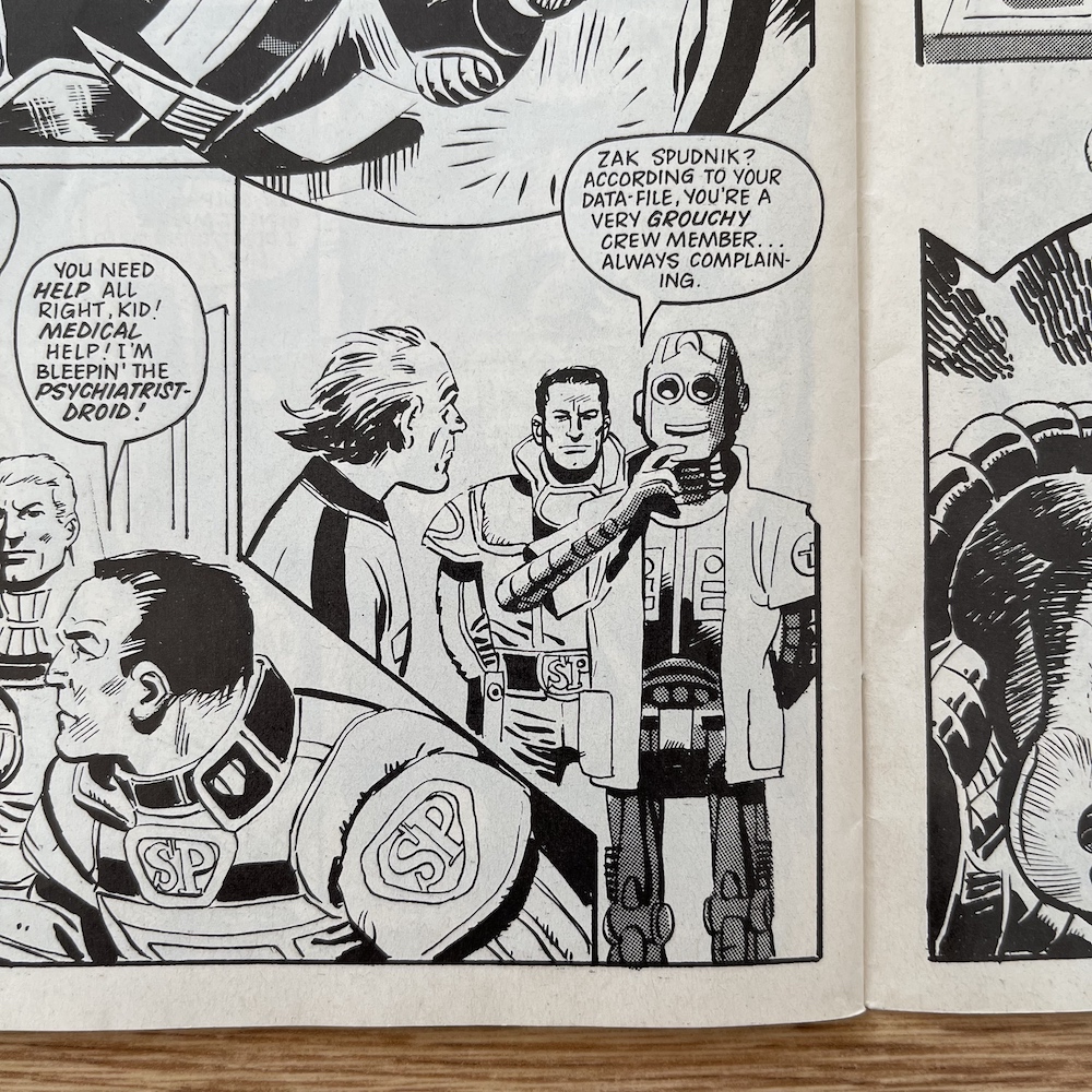 Yuggoth, Master of Chaos looks very much like a man in a rubber suit, 80s Doctor Who-style alien which suits the retro futuristic nature of this read through perfectly. He inhabits poor Zak’s body and straight away we can tell where this is headed, War of the Worlds-style. Of course, Zak isn’t believed by anybody and only he can see Yuggoth’s reflection in the mirror, so he gets scolded some more by his bosses before one of them sets him up with a psychiatrist-droid which is clearly programmed to get the results his boss wants. (Again, how did Turbo pick these people?!) It’s only a matter of time though before our visitor has seen enough to make his move.