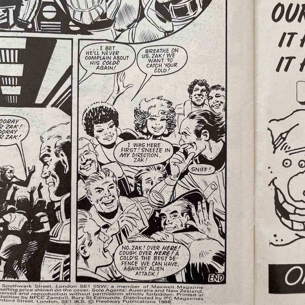 In the end Zak becomes a hero but in today’s post-Covid (almost) world that final panel is just plain scary! It adds to the overall thriller feel to the story, with these humans just opening themselves up to pain and misery thinking it’s their salvation, but clearly that wasn’t the intention of the ending at the time. It just goes to show how these strips not only aged well over the decades, they could even improve.