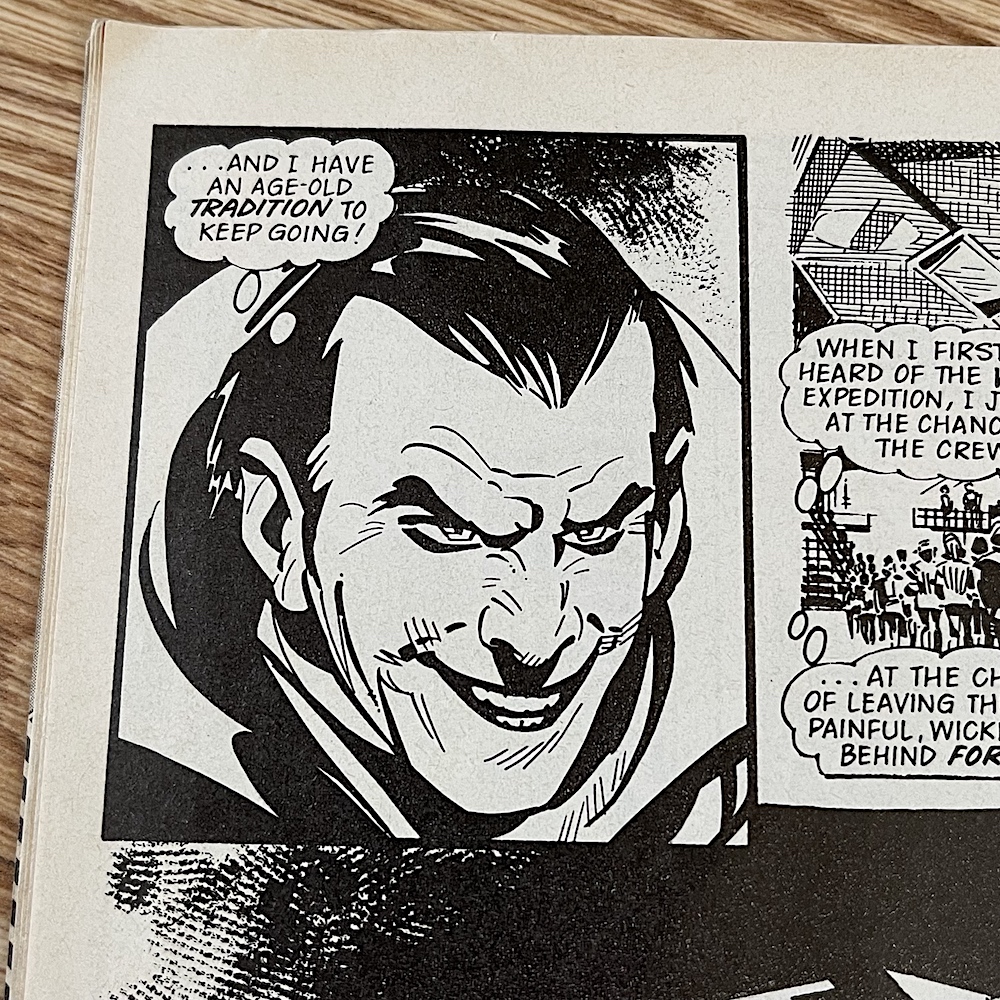 When an attack is disturbed mid-feast he has to leave the body behind and as Wildcat Commander Griffin reviews the tapes he sees Lugosi disappear into thin air. He ends up tricking Lugosi into believing he’s replacing an ill doctor on an expedition to one of the planet’s moons, but before anyone else boards the shuttle craft it’s launched out of the Wildcat on autopilot. The last page of the strip is below and very neatly wraps up the story.
