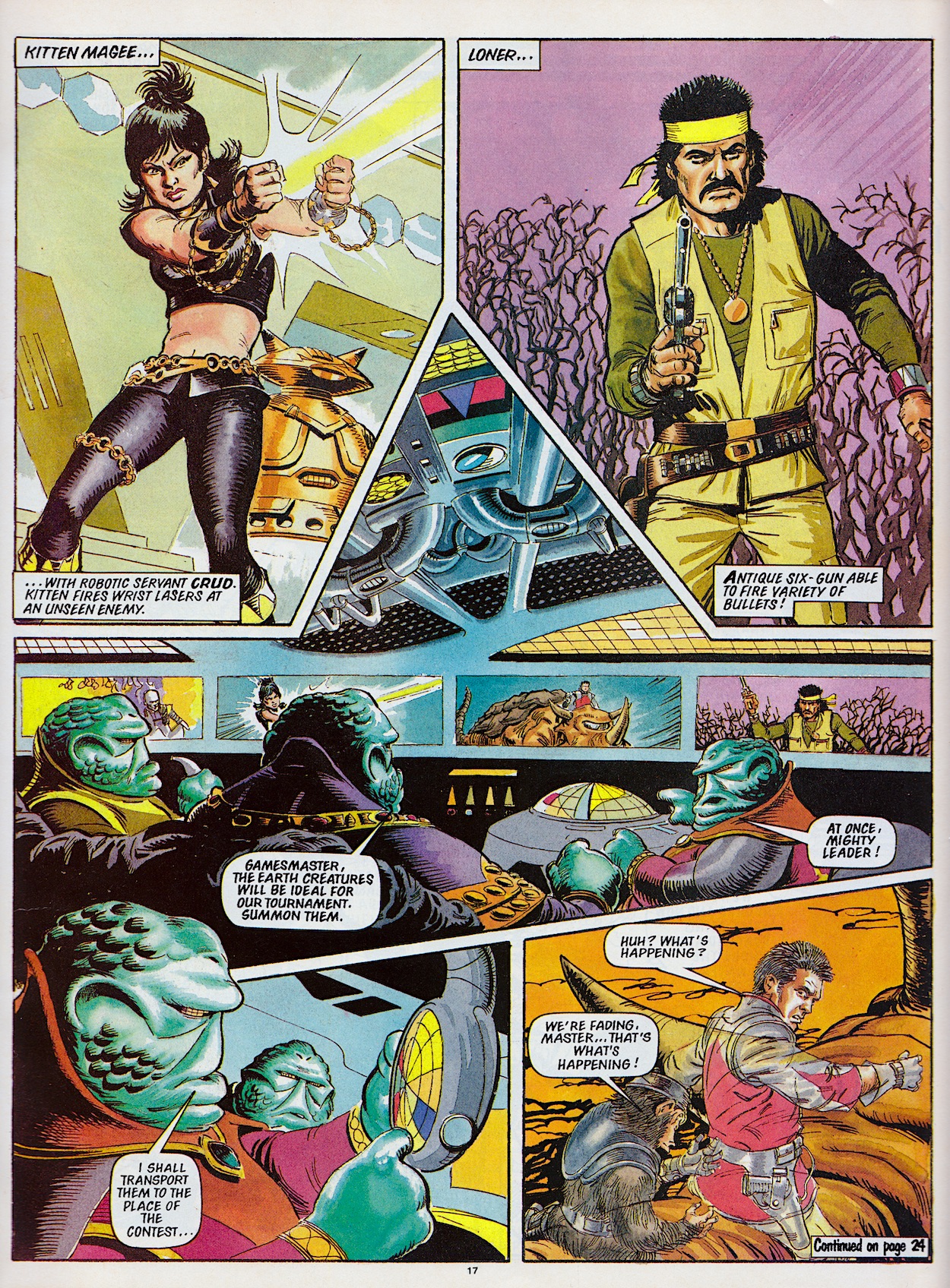 Pitted against some suitably retro-attired warriors, each member of the Wildcat crew takes it in turn to see off their individual opponents by using the weapons or skills we’ve seen in the regular comic. This and the reprint of the origin story seem to be introducing new readers to Wildcat, which is grand if this were indeed a big, fat annual for an ongoing comic. But by this stage only Loner’s story still continued in the pages of Eagle so it feels strange a lot of this special so far isn’t really aimed at established fans.