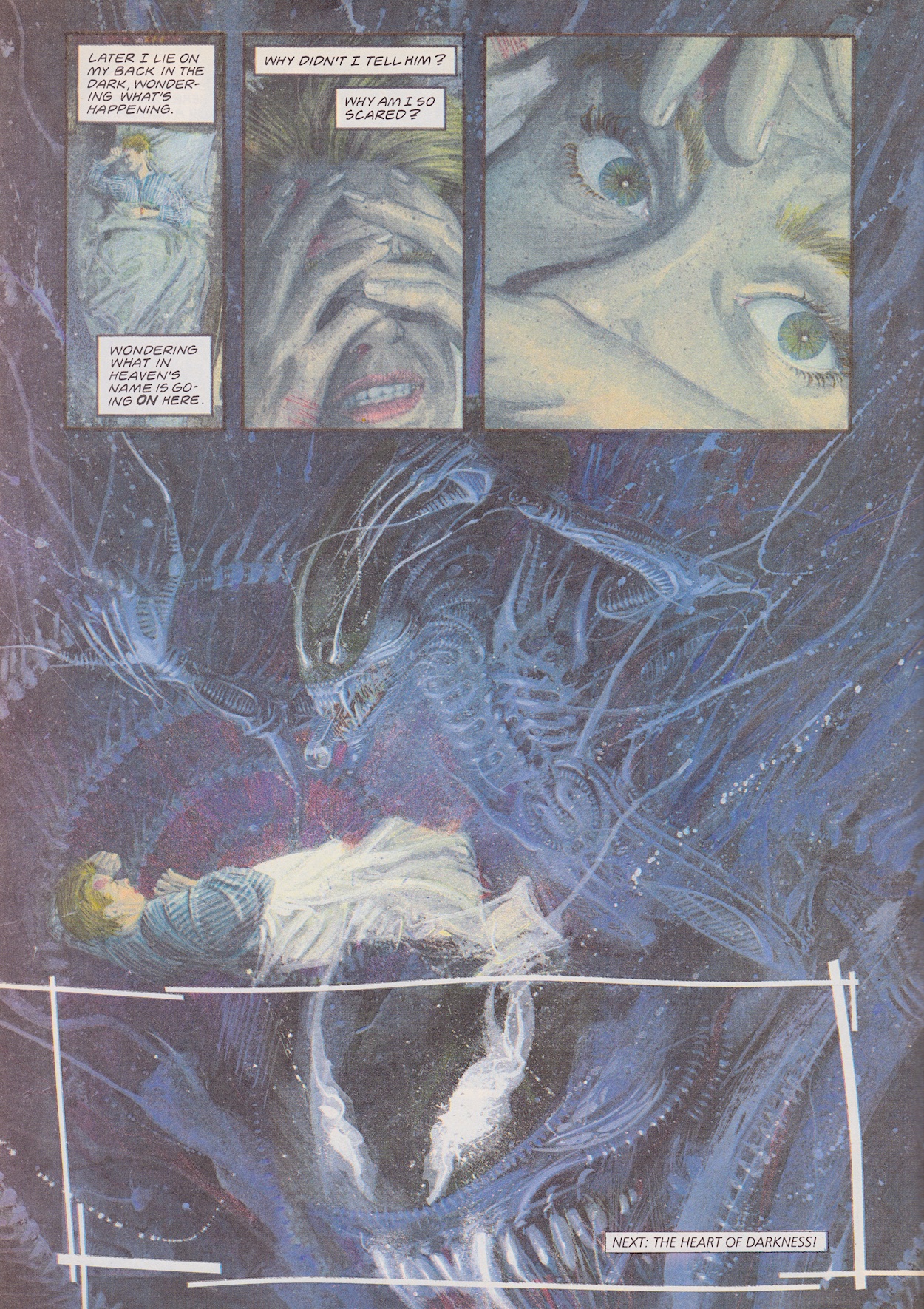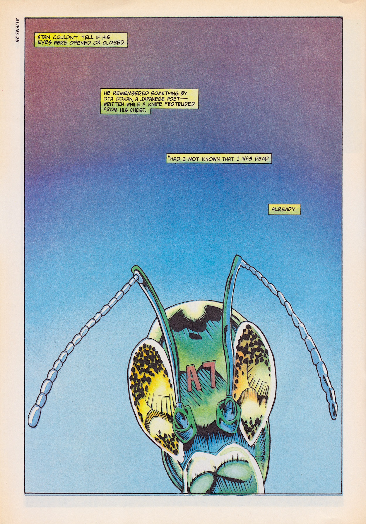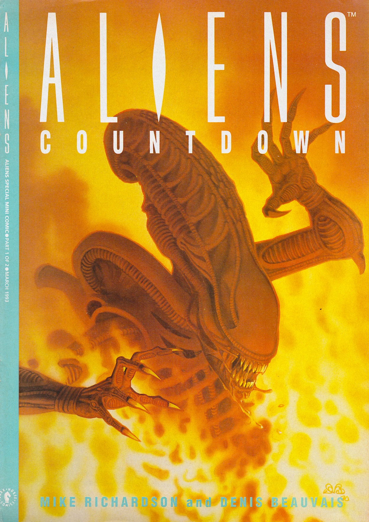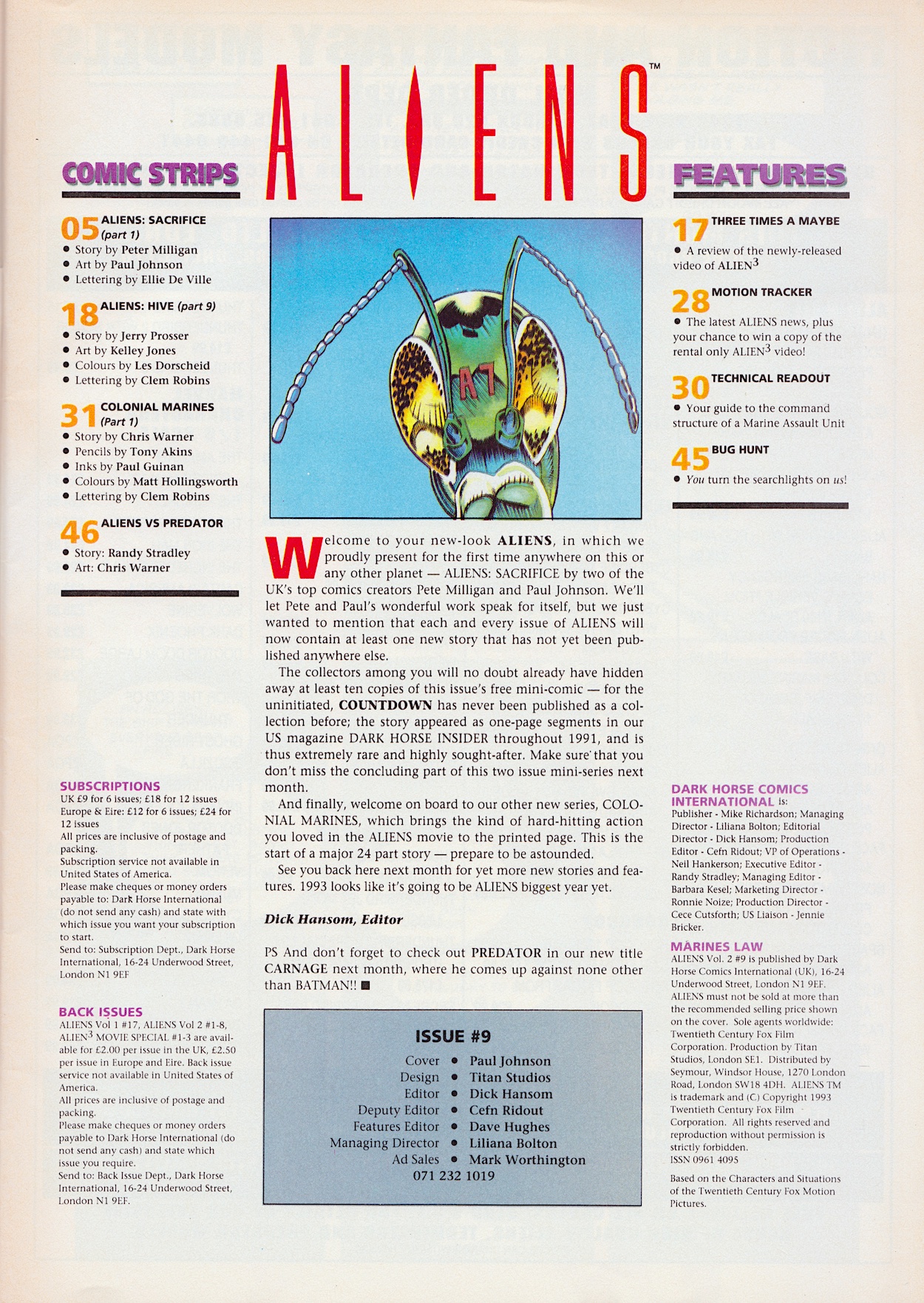 I’ve been excited for this ninth issue of Dark Horse International’s flagship Aliens comic for a few reasons. First up, it includes the free gift mini-comic, a rare treat when buying classic comics. Secondly, Hive finally comes to its long overdue conclusion. Thirdly, the epic Colonial Marines strip I remember from the one issue I bought as a teenager begins. But there’s something else above and beyond all of that.