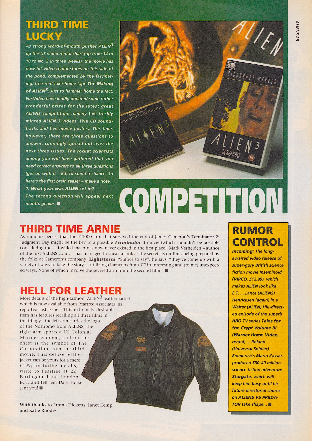 I wonder if that list of directors would’ve had a different order just a few months later after the release of Jurassic Park? Especially with innovation being a key factor. The comic gives away a copy of Alien³ on VHS despite panning the video’s pan-and-scan 4:3 ratio elsewhere in the issue. It also categorically states a Terminator 3 would be impossible, and there’s a blink-and-you’ll-miss-it first mention of a movie that would spawn a future TV obsession of mine. These sorts of things are the reason I love looking back via these pages every month.