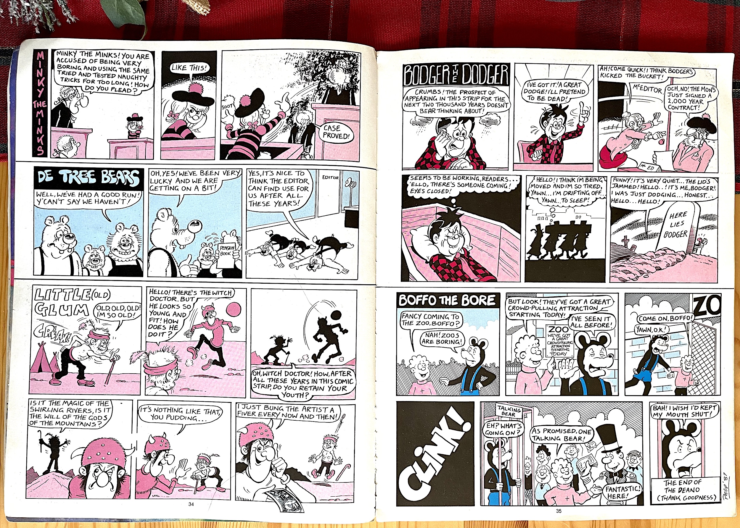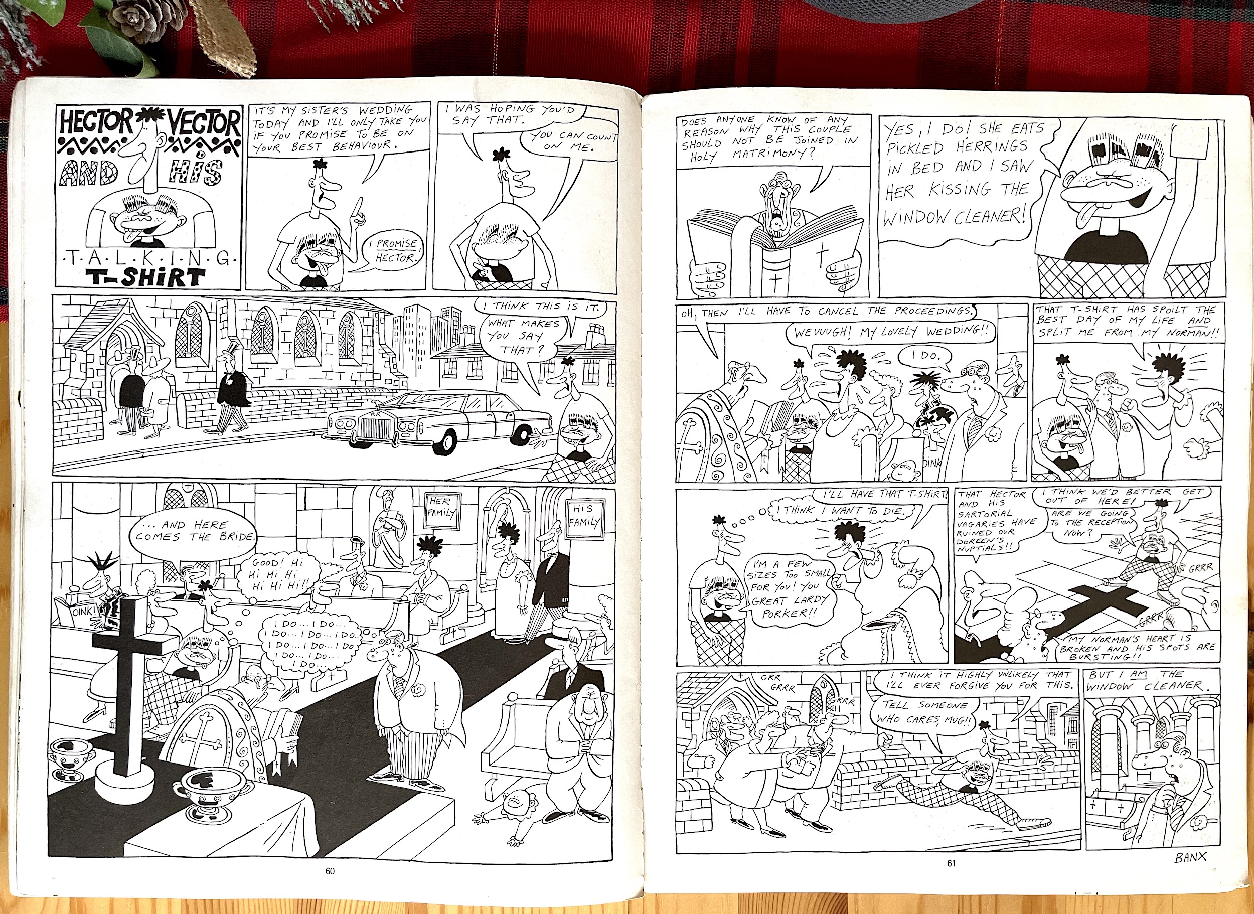 From showing off its covers and hearing the raucous laughter of anyone I could grab over that festive season, to rereading it in my 20s, 30s and now 40s, and lending it to friends many years after OiNK was a distant memory… this book will never, ever get old. It’s OiNK in its purest, most concentrated form. Every page feels fresh and new, like it was written this year, not 35 of them ago. Receiving my favourite issue of the regular comic, the Christmassy #43 and this back-to-back made my Christmas in 1987, and reliving them has done it again in 2022. If you’re reading this post on the day of publication I hope you have a wonderful day and a very Merry Christmas!