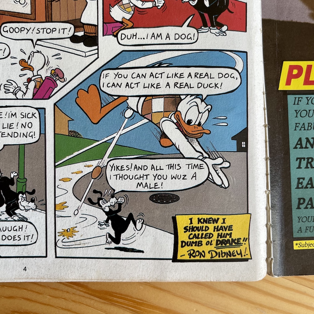 The story is on the same page as the previous Disney parodies and has the same banner title at the top. Again, I think this may have been for new readers so they wouldn’t be expecting more of the same spoof each week. Seasoned pig pals didn’t need such explanations. It’s a brilliant parody and one I’m sure Barrie would approve of.