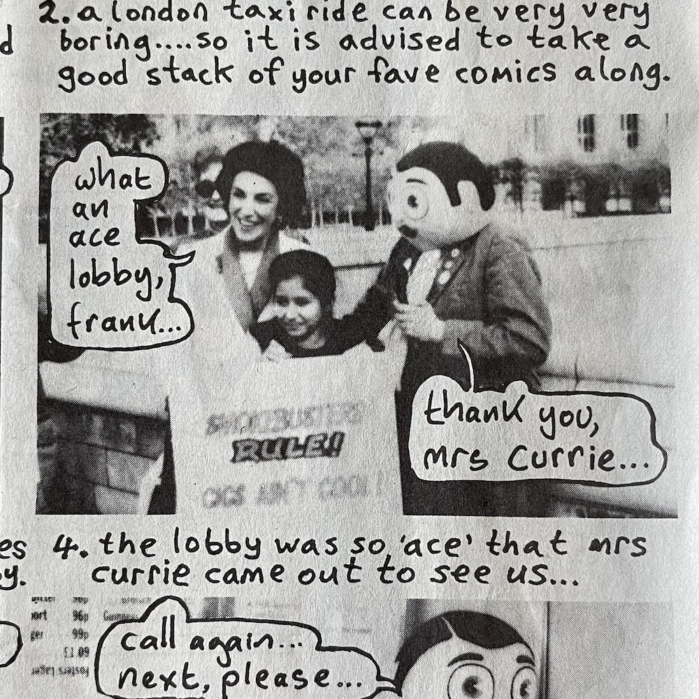 While OiNK’s humour for the most part has not aged, when it spoofs celebrities of the 80s it’s inevitable that kids reading it today (as some blog readers have told me their own kids do) may not appreciate those particular strips as much as us who grew up with them. This particular Madvertisement has aged but for a whole other reason, however let’s not shut down the whole country again and just move on, shall we? I do like Steve Gibson’s very Spitting Image-esque drawings too.