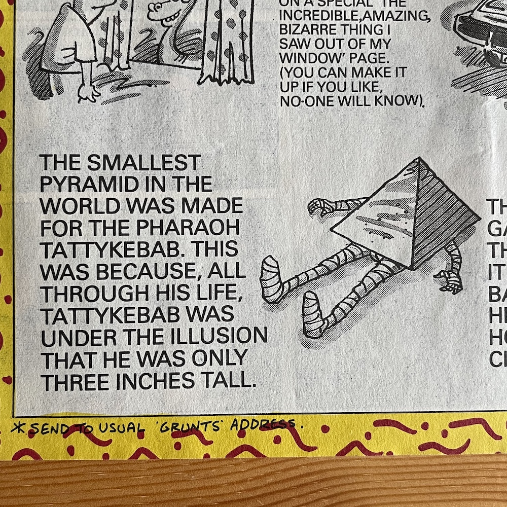 Nowadays this makes it feel more like a modern traditional comic, although to be fair when compared to the traditional comics of the time (with their almost exclusively full-page or double-page strips made up of regular characters only) it still stood out as very different. But even back then it just felt a little less ‘OiNK’-like. As the weeklies went on this would change back to more of what we’d been used to, so the team could’ve just been keeping it a bit simpler for now to get ahead of the new weekly schedule. That other change was more of a shock though.