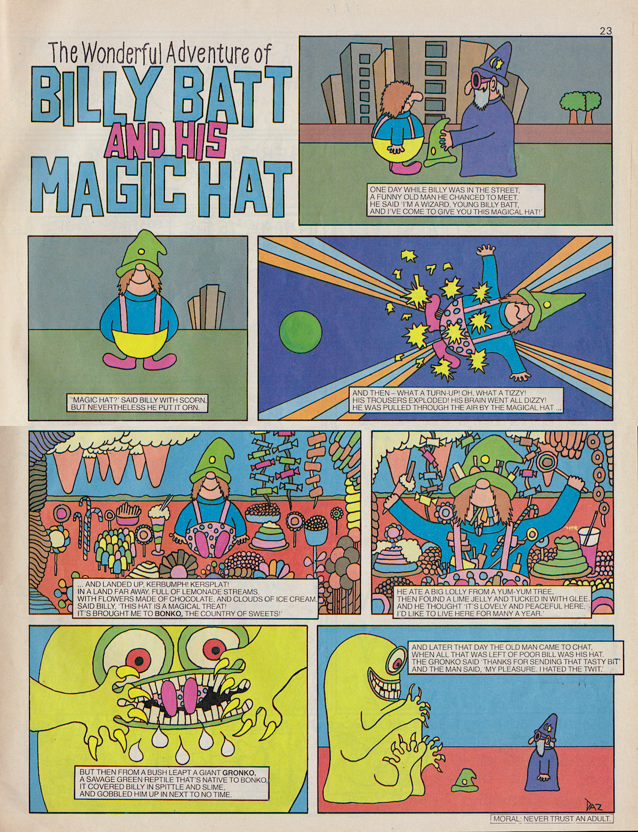 Roger was always a favourite of mine. Most of the time he’d appear in quarter-page strips like this one, each with an innocuous beginning, only for Roger to take the meaning of something completely the wrong way. Roger would appear in most of the fortnightly issues before disappearing when the comic turned weekly. But that’s still a lot of short, sharp gags and he would never disappoint.