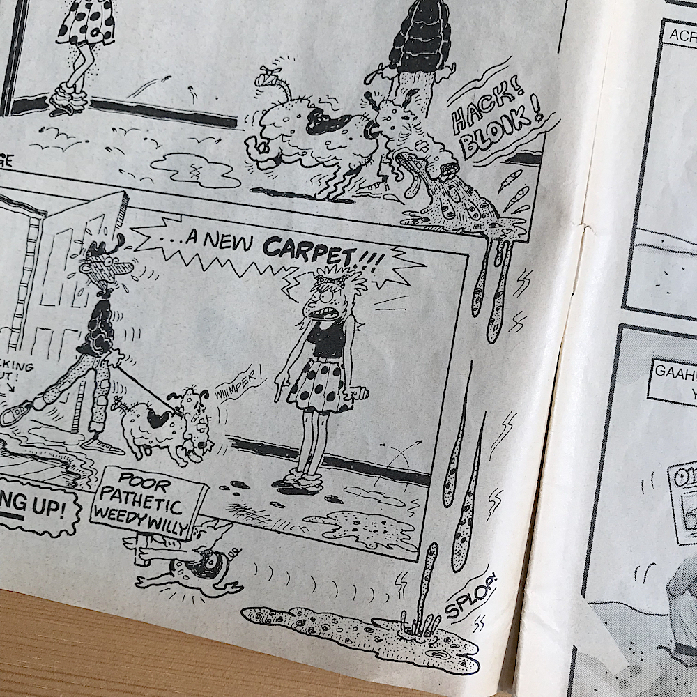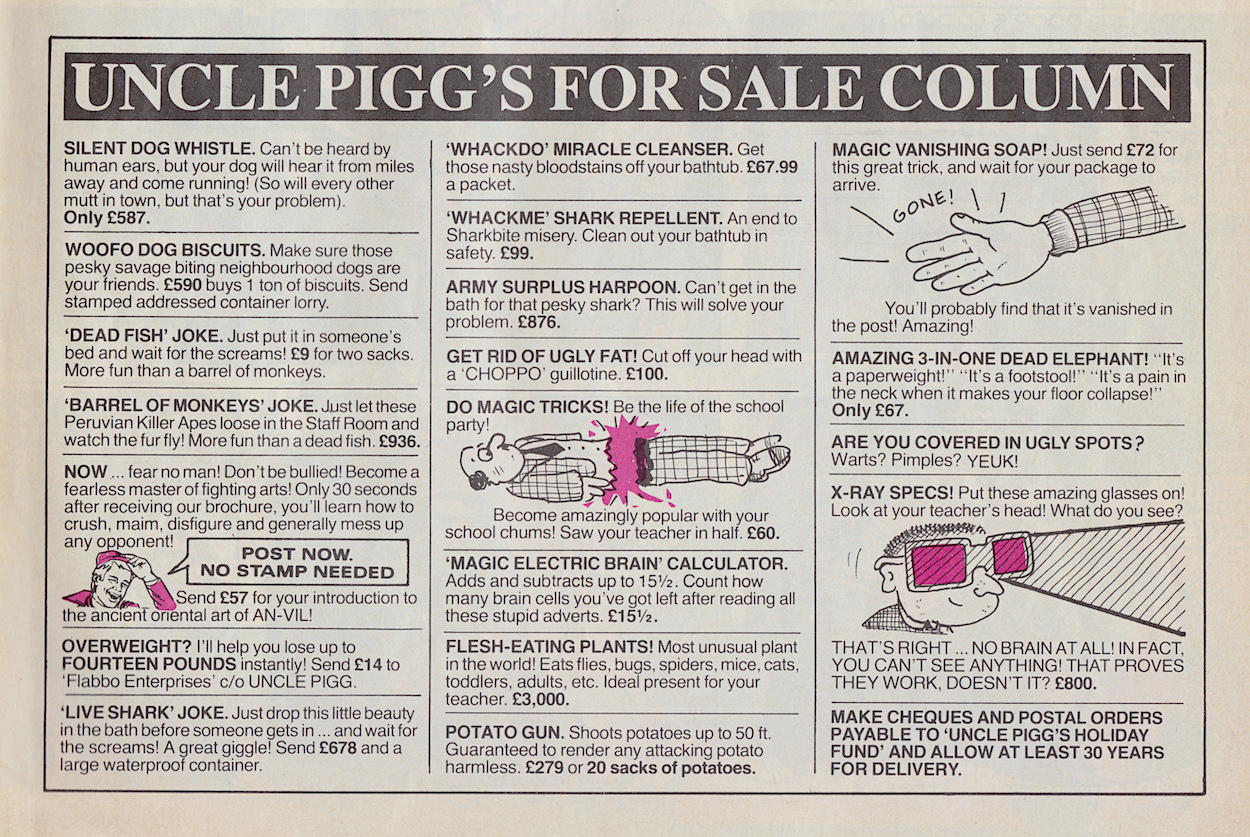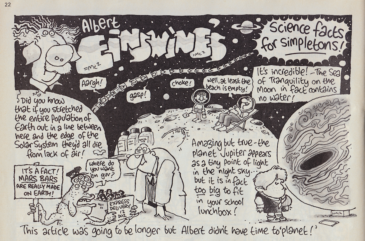 Any excuse for some more Ian Jackson artwork, right? I’ve included it for more than just the art, obviously. It’s a genuinely funny read and sums up how unpredictable the humour in OiNK could be, in particular in these little one-off additions to every issue. Ludicrous stuff.