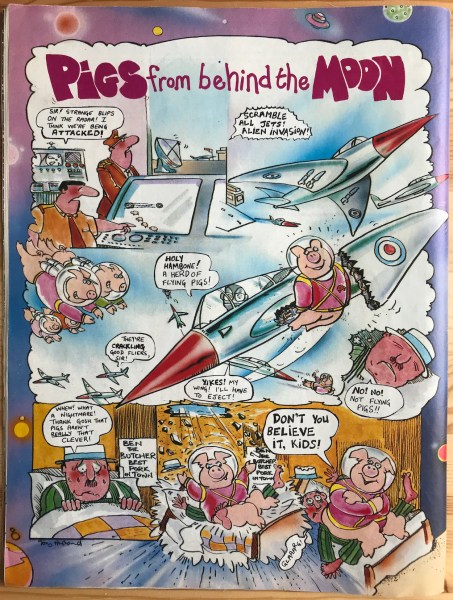 Star Truck would return in The Oink! Book 1988 and that’s when I first met the crew. Somehow the sequel is even funnier, again taking place across several other pages but in the much bigger book format there was more scope for what they could do with the idea.