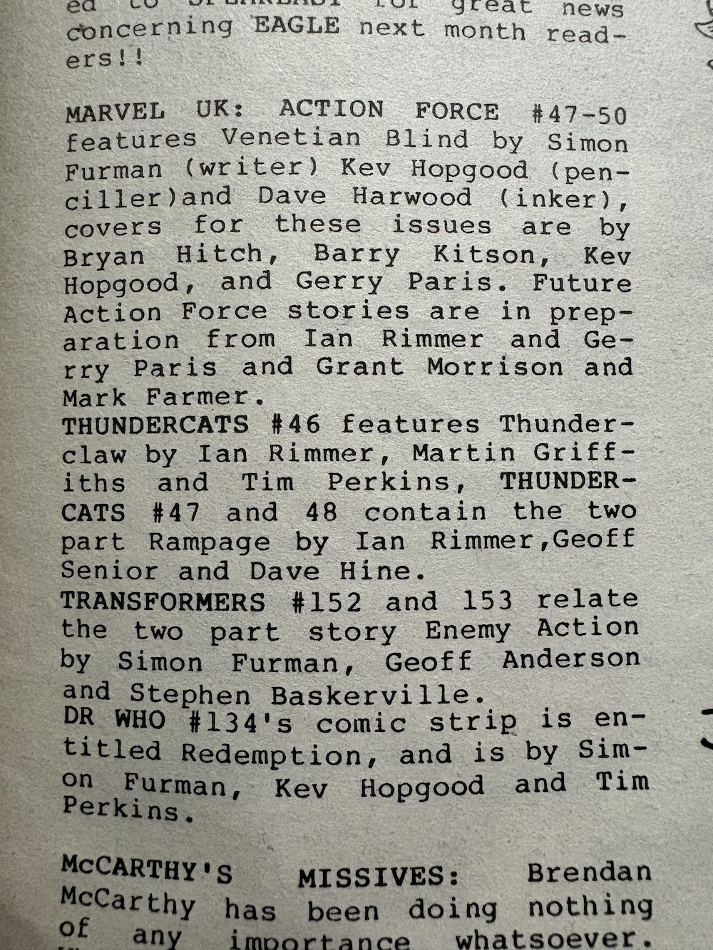 It’s a weighty volume at 64 pages so it’s a lot thicker than the previous holiday specials, but my teenage enthusiasm was tempered somewhat when I read the strapline along the bottom of the cover. The “Summer Collection” title referred to the fact this was a collection of reprint strips I’d read before, with only one new four-page strip in the middle of the comic featuring cameos from favourite characters rather than new individual stories.
