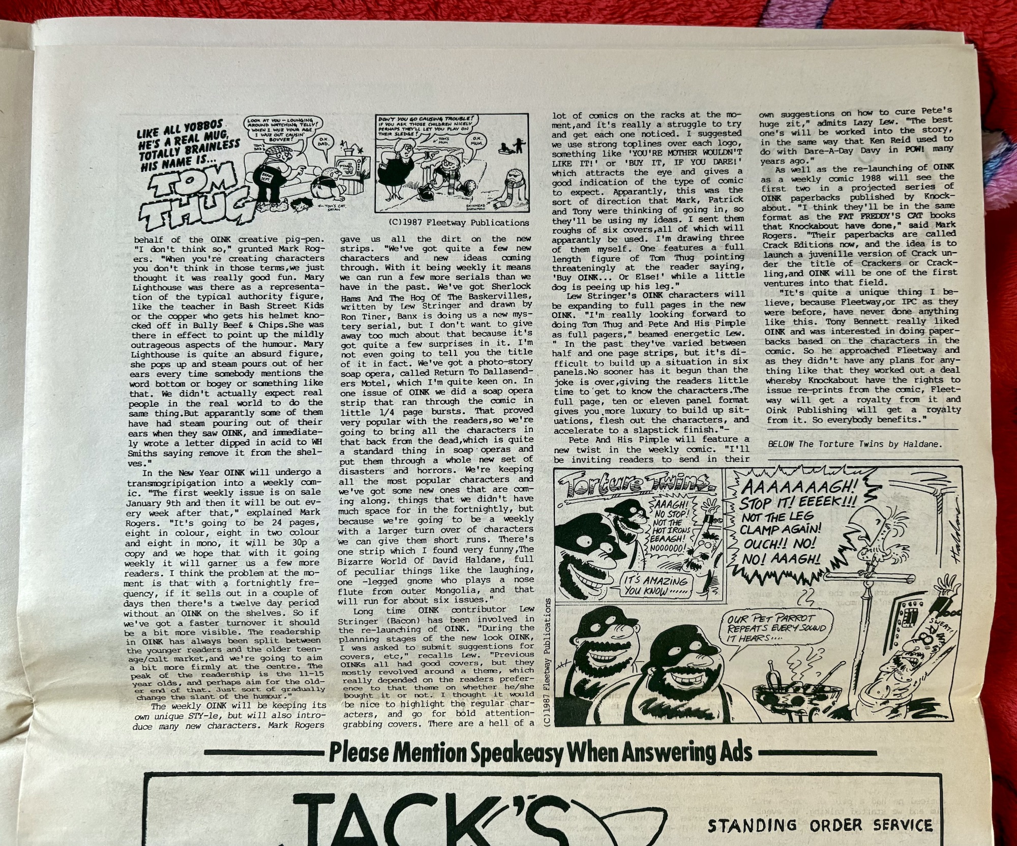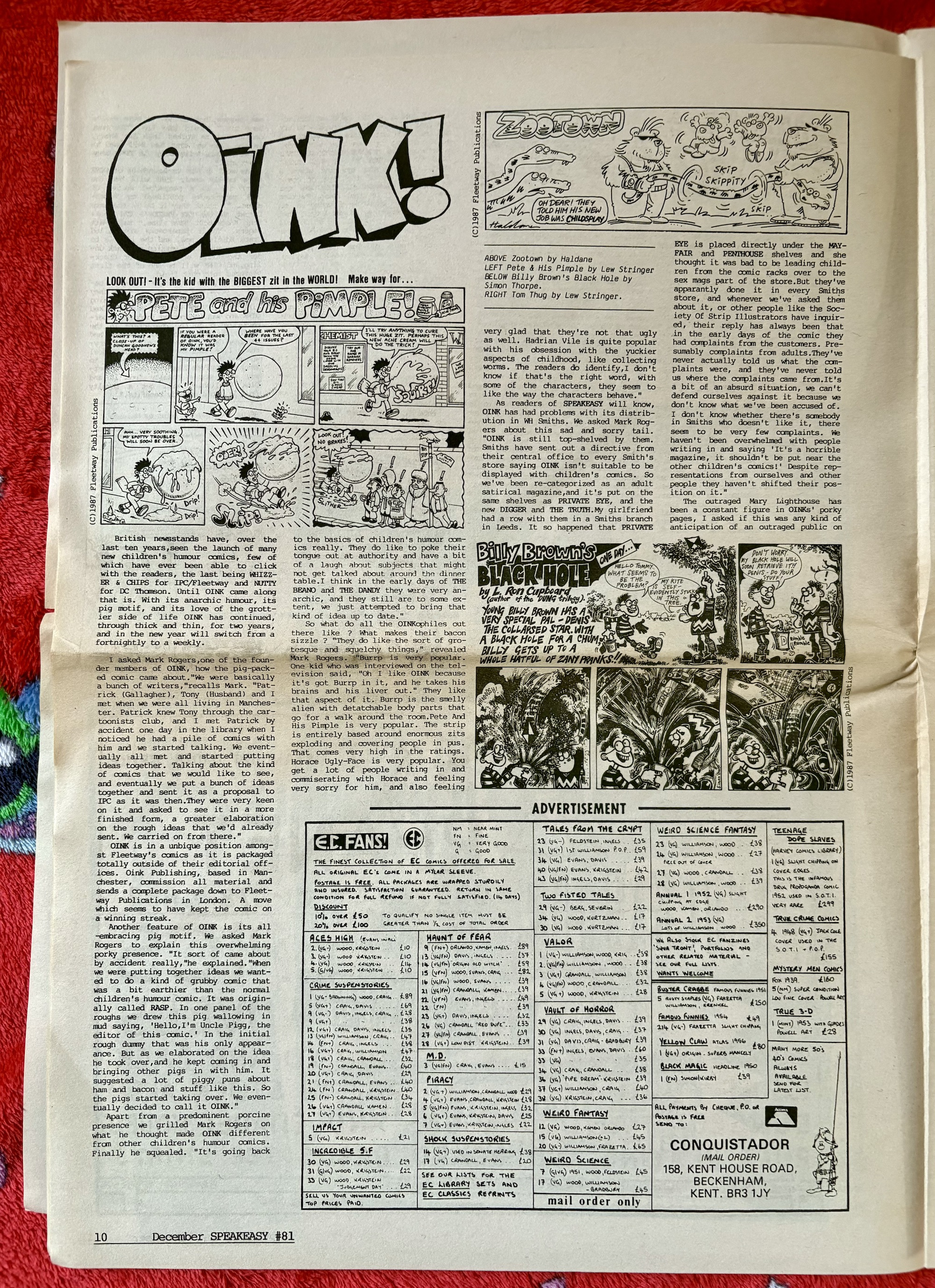 It’s only after reading the whole run as an adult that, as I close over the last page of the OiNK Summer Collection, I see it couldn’t have ended on a better and more personal note. The back cover is the same back cover as #14, the very first issue of OiNK (and the very first comic) I ever bought. Written and drawn by the wonderful team of Mark and Ian, it’s one hell of a coincidence. OiNK ends by bringing me full circle back to that fateful day in November 1986 when I discovered it in the first place.