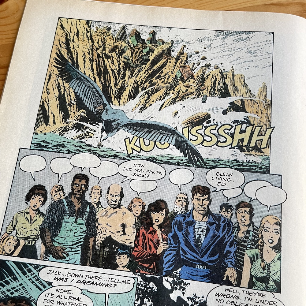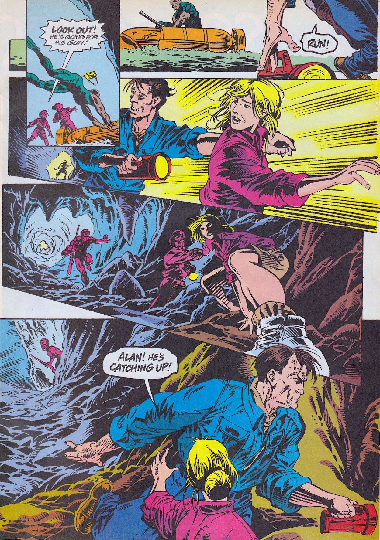George will be key in developing the story further and, eventually, in getting us off the island for the first time in the franchise. For now though this is our cliffhanger for another month after a dramatic, beautifully drawn eight-page adventure. Again, the Jurassic Park strip has the least pages of the three stories but it doesn’t feel like that while reading, and where it’s been cut into parts by editor Dick Hansom we’ve ended up with two opening chapters that feel very different from each other (even though they were part of the same issue in the States), as if it was written for this format.