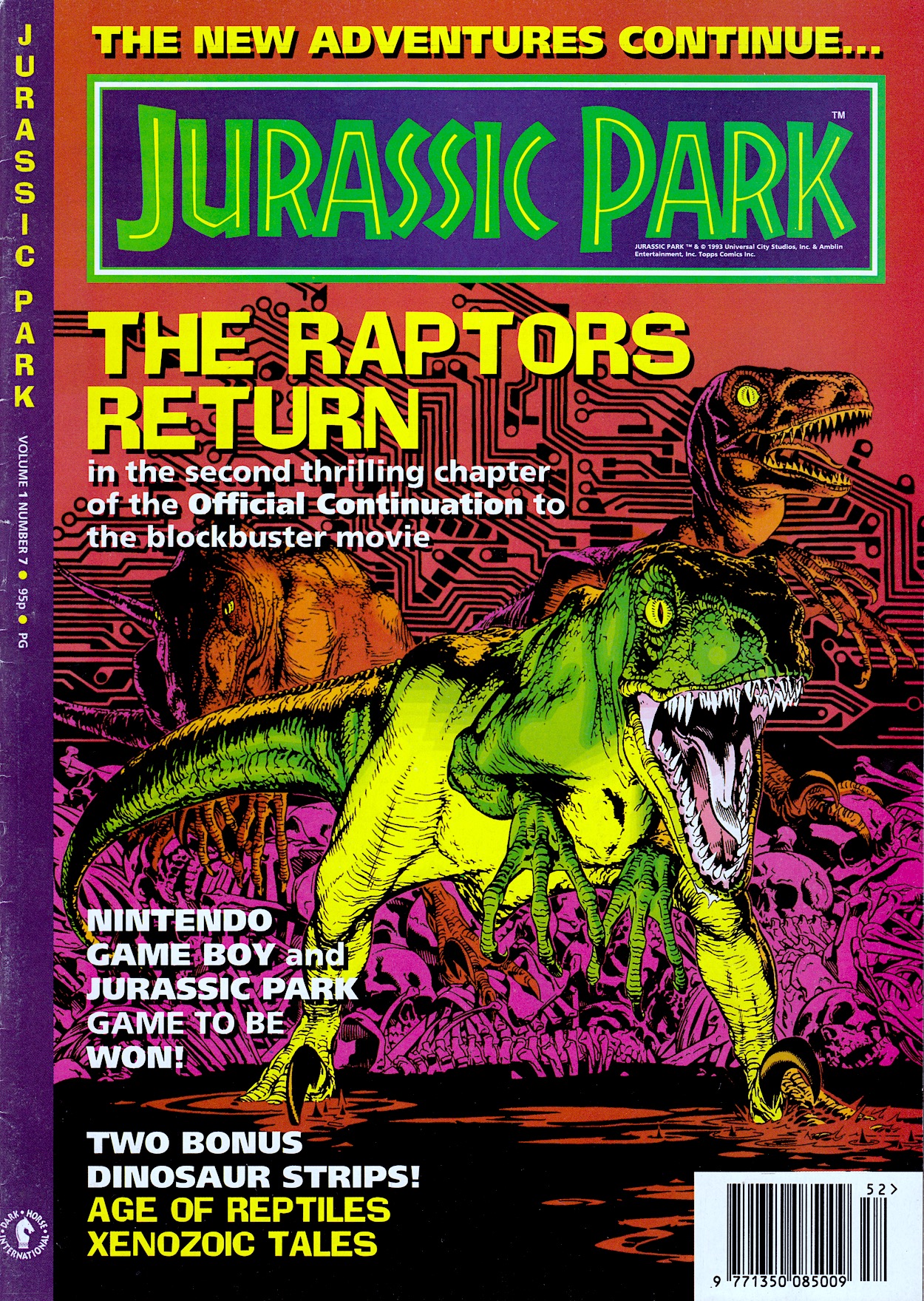 The Christmas festivities may still be upon us but you wouldn’t know it from the latest edition of Dark Horse International‘s Jurassic Park from 1993. Released just three days after Christmas Day itself there’s not a hint of snow or any festive wishes for its readers. The cover is really special though and the first by Michael Golden to feature on the UK title. I love its mix of the natural and technological (the computer circuits in the background), perfectly summing up the world of Jurassic Park in one gorgeous and eye-catching piece of art.