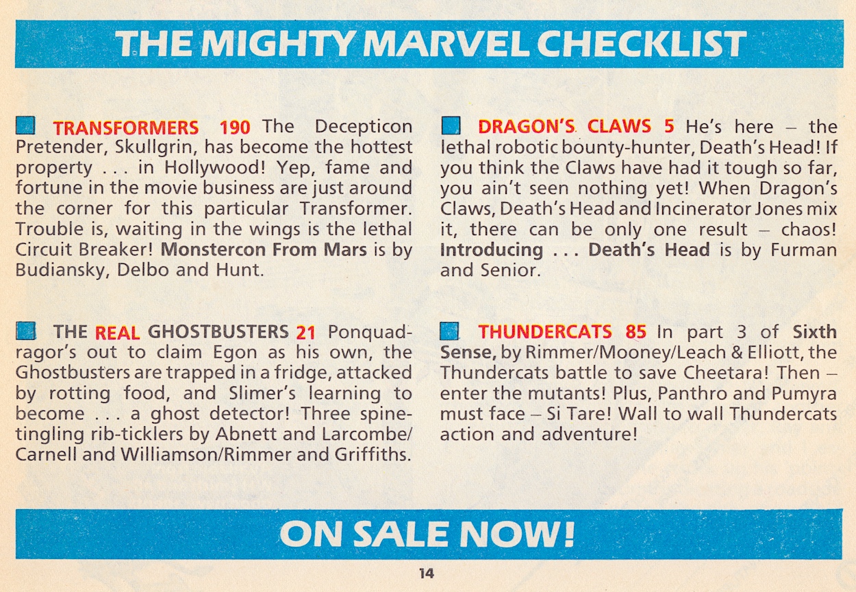 As I mentioned last time there wasn’t an actual checklist in The Real Ghostbusters and The Transformers and Action Force this week, but we’ll try to make up for that with two things.
